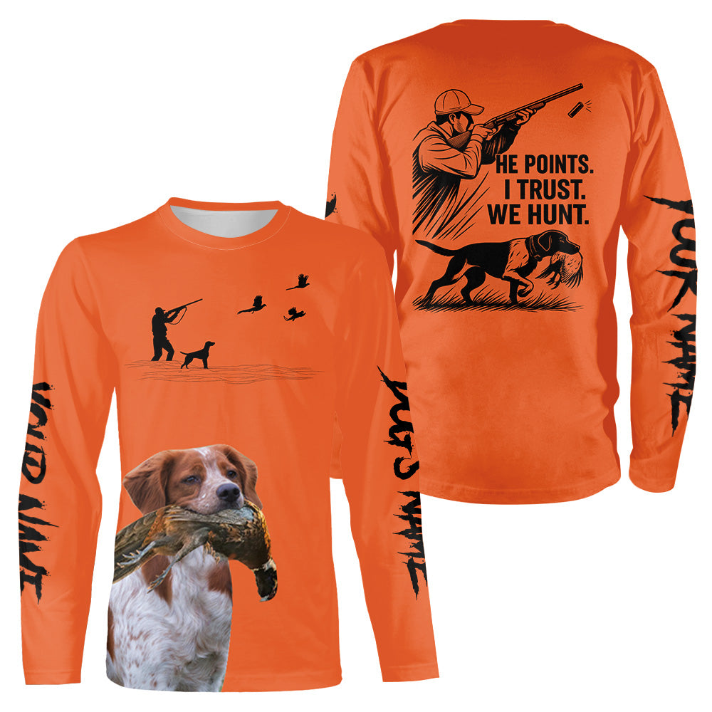 Designed for passionate hunters and dog lovers, this custom hunting hoodie combines rugged style with personal customization. Featuring a lifelike image of a hunting dog in action, pheasant hunting, and orange color scheme, this hoodie is a must-have for any hunting enthusiast.