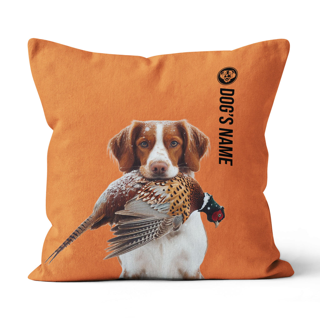 Brittany Hunting Dog Custom Dog's Name Orange Pillow, Hunting Dog Pillows FSD4401