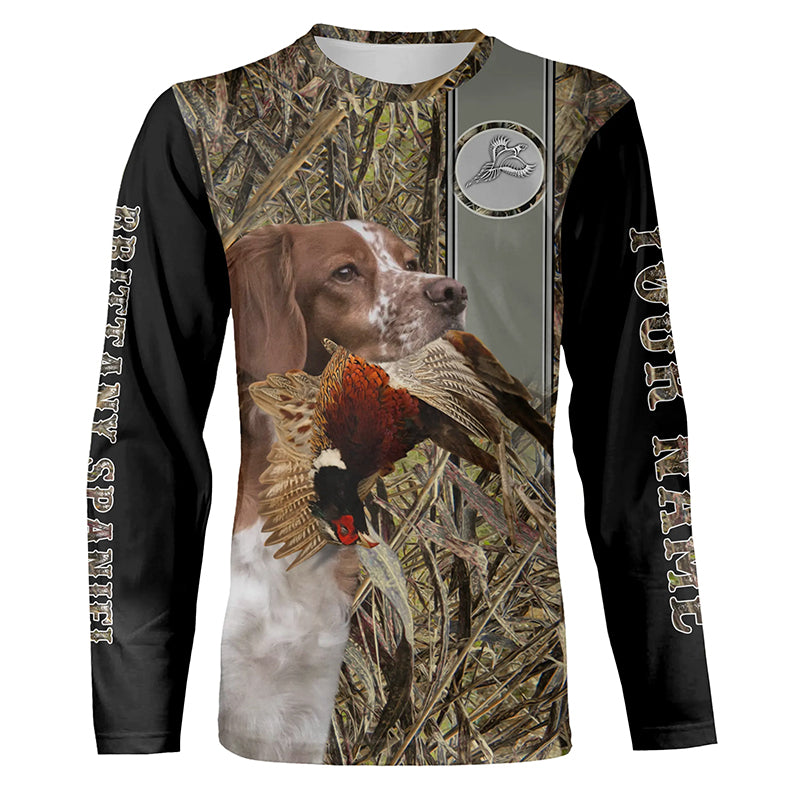 Brittany Spaniel Hunting Pheasant Camo Custom Name All Over Printed Hoodie, Long sleeve Shirt FSD2884