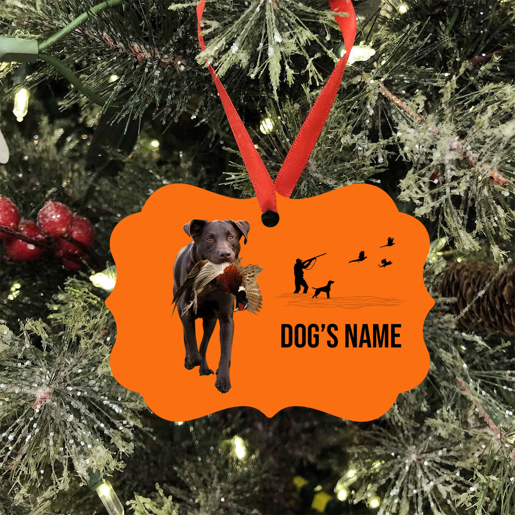 Chocolate Labrador Retriever Hunting Dog Custom Name Medallion Aluminum Ornament - Dog Christmas ornament FSD4344