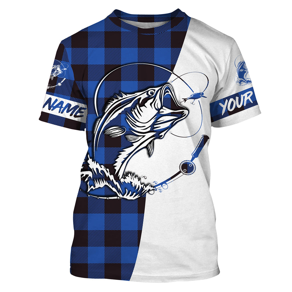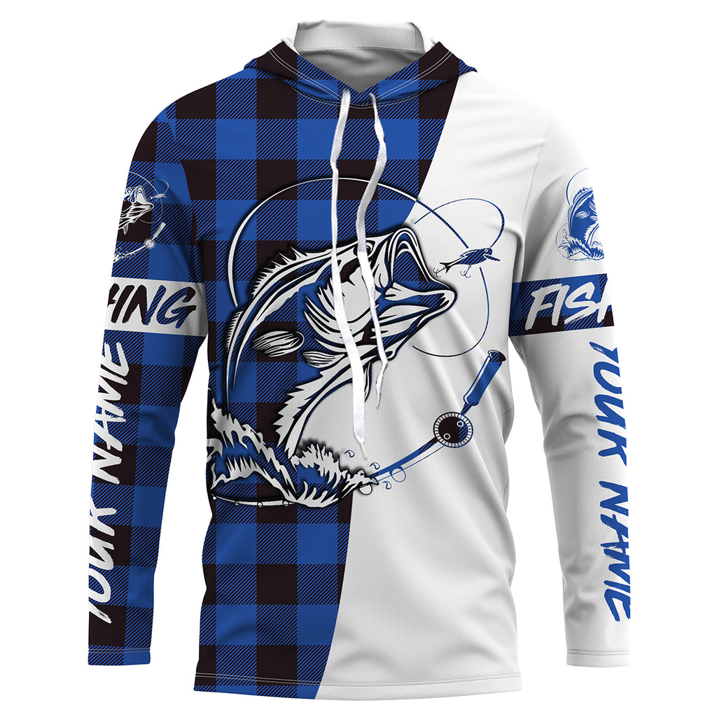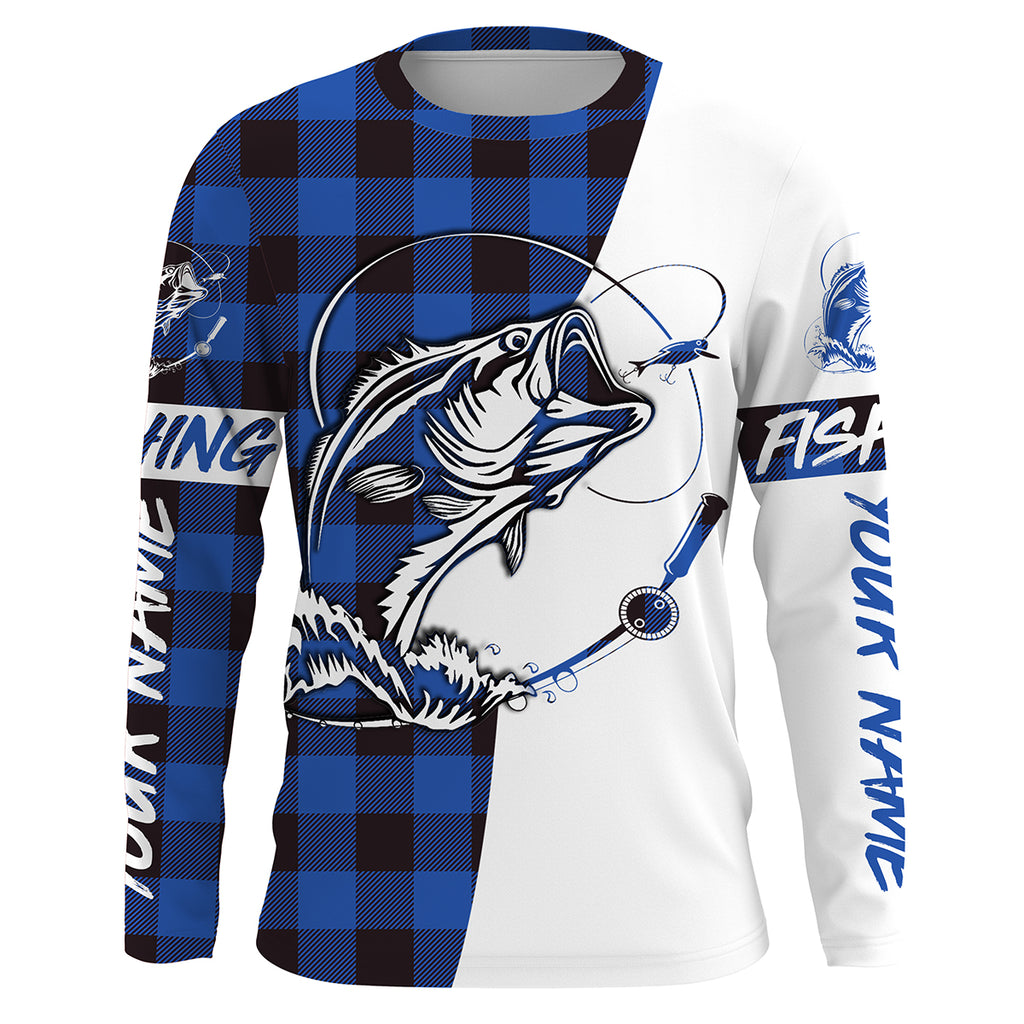 Custom Bass Fishing Blue Plaid Fishing Shirts, Fall Bass Fishing UV Long sleeve Fishing Shirts, Fishing Christmas gifts - IPHW1856