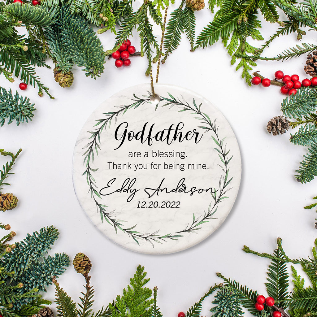 Personalized Ornament For Godfather - Keepsake Gift from Godfather, Godmother, Godparents - Christening Baptism Gift - Christmas Ornament from Godchild - JOR19