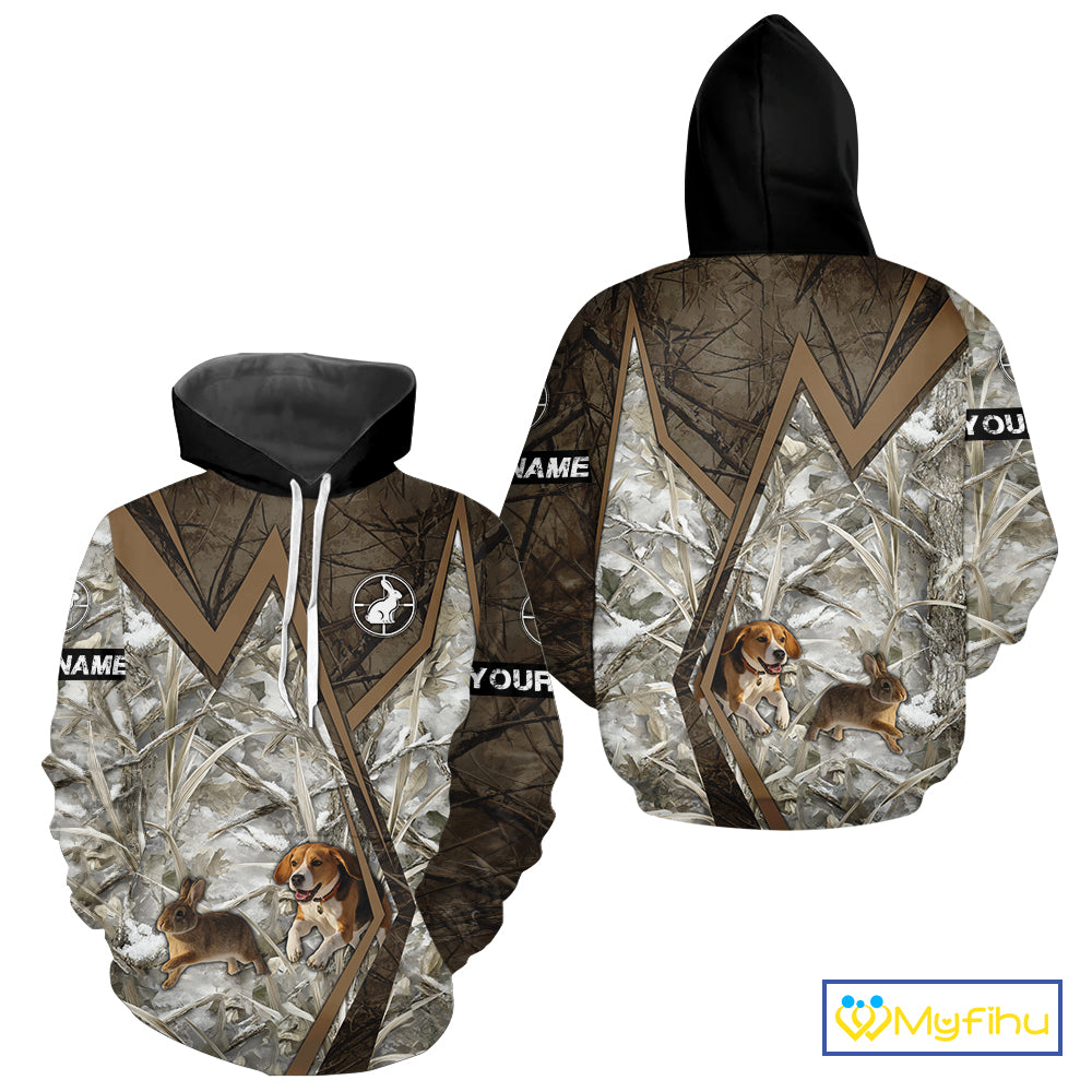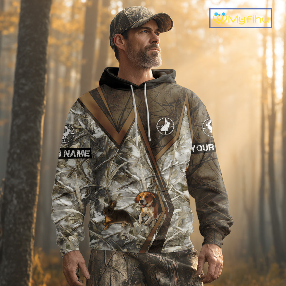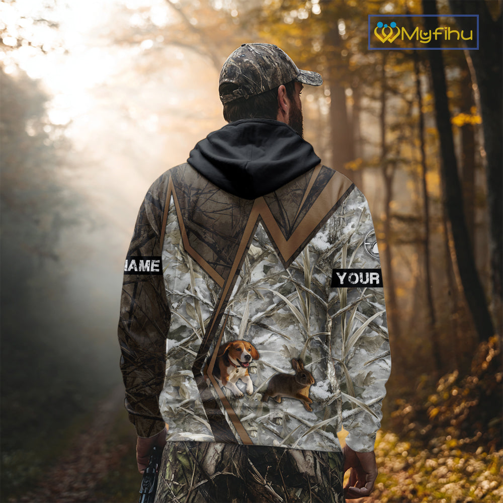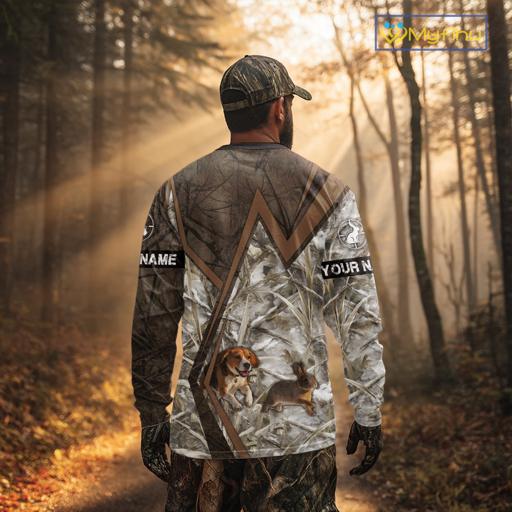 Beagle Dog Chasing the Rabbit Camo Custom Name Shirts, Rabbit Hunting Gifts NHT283