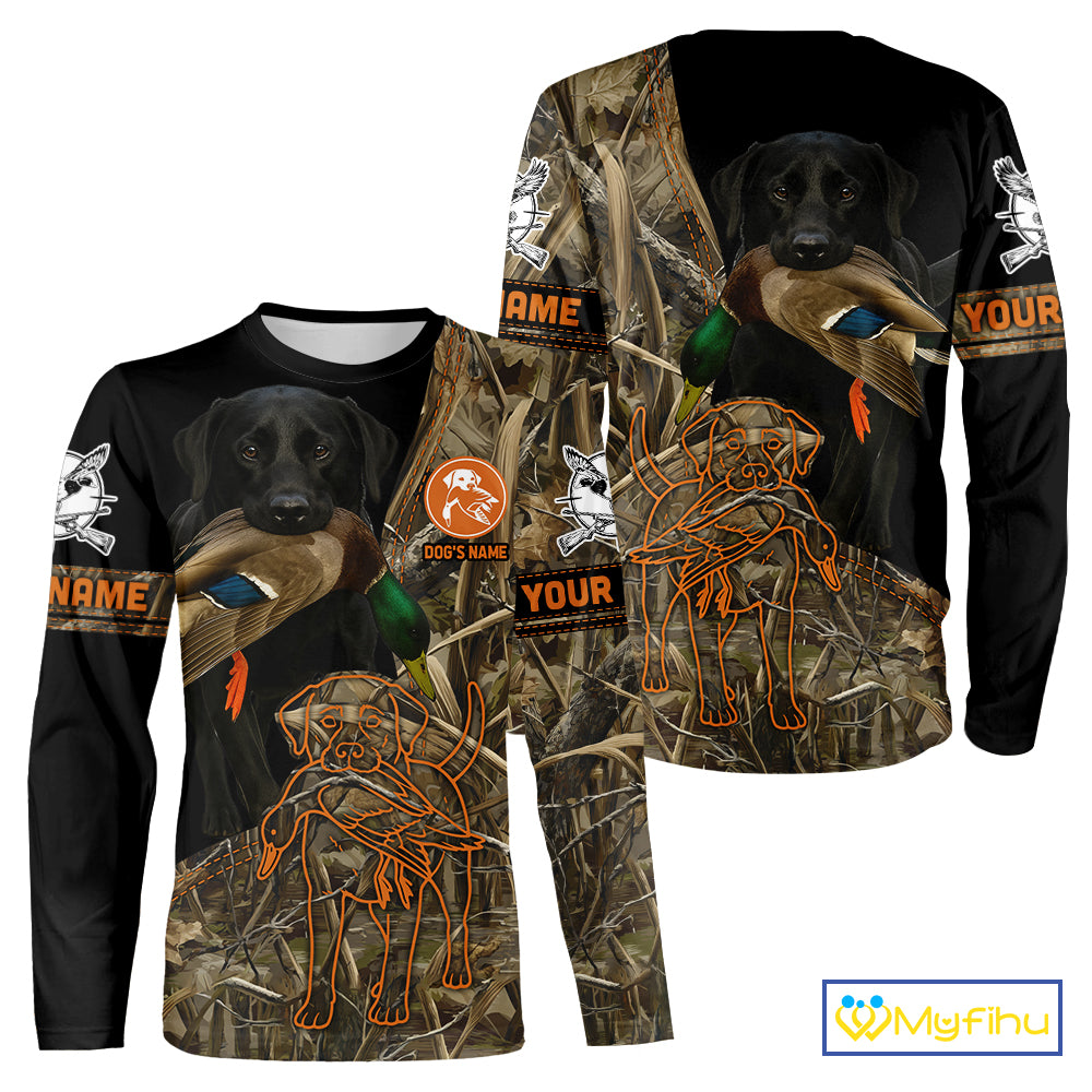 Black Lab Hunting Dog Customized Name All Over Print Shirts For Hunters, Duck Hunting Shirt NHT271