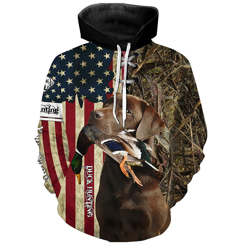 Chocolate Labrador Retriever Hunting Bird Dog Duck Hunter American flag full printing shirt, Hoodie FSD3264
