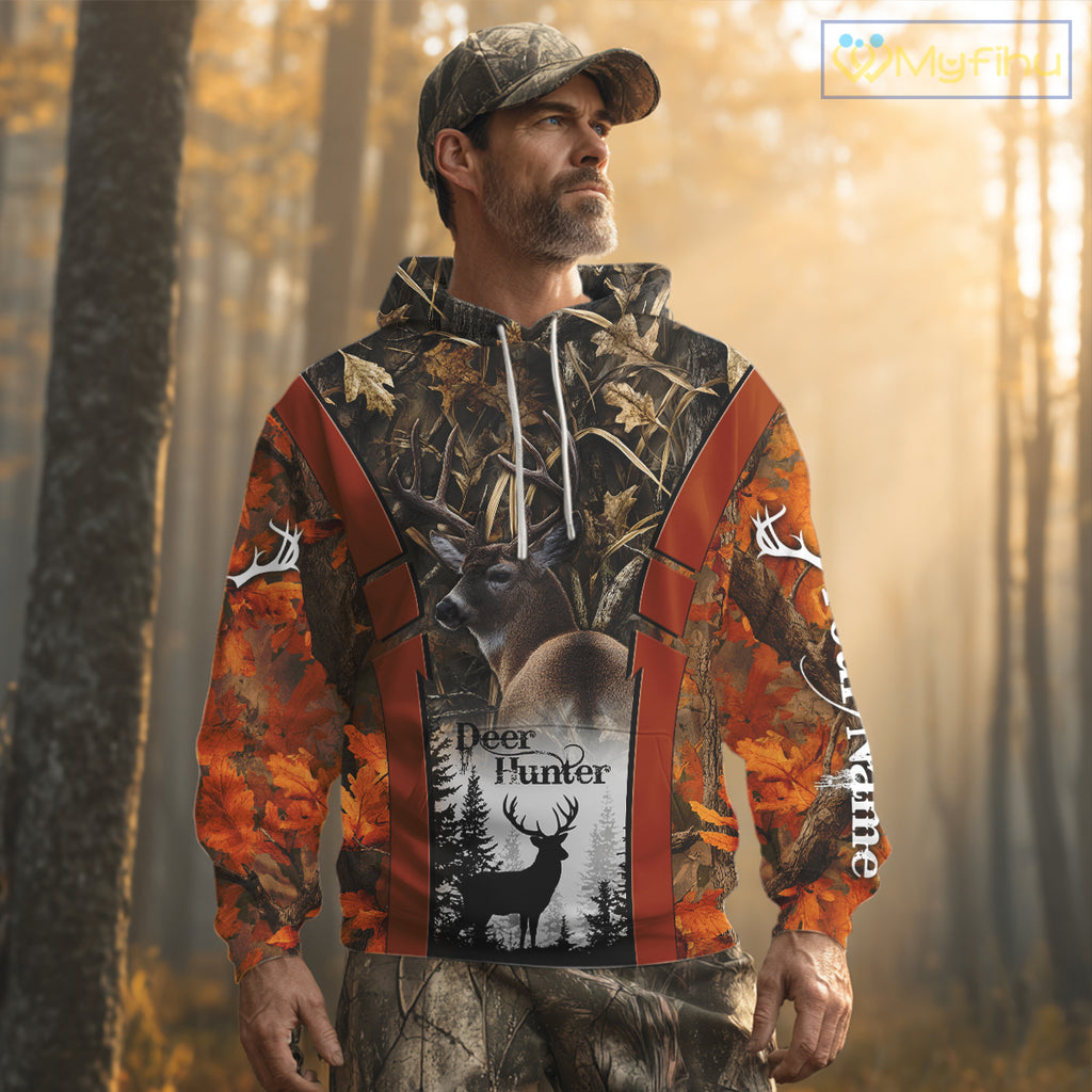 Customized Name Whitetail Deer Hunting Orange Camo Hoodie 3D Shirt, Gift for Hunters NBT297