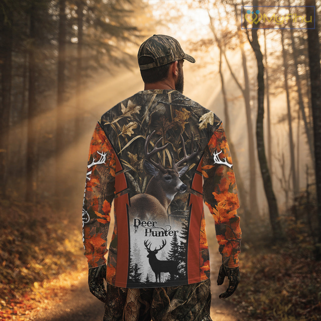 Inspired by the thrill of the hunt and the beauty of the outdoors, this shirt combines durability, comfort, and a unique hunting vibe. Customize it with your name or preferred design elements — from deer graphics to scenic landscapes — to create a one-of-a-kind piece. A perfect gift for passionate deer hunters and outdoor lovers, especially during hunting season.