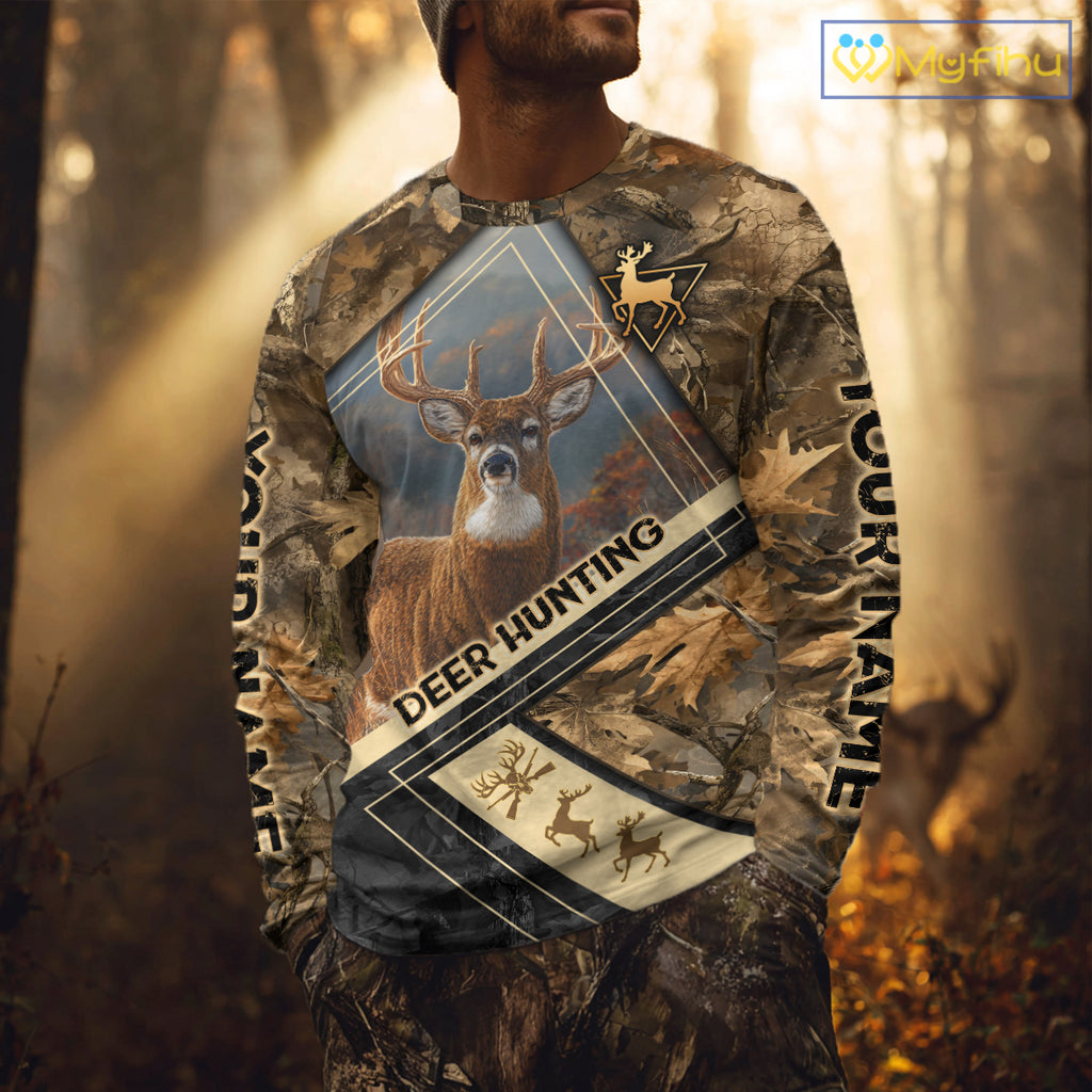 Inspired by the thrill of the hunt and the beauty of the outdoors, this shirt combines durability, comfort, and a unique hunting vibe. Customize it with your name or preferred design elements — from deer graphics to scenic landscapes — to create a one-of-a-kind piece. A perfect gift for passionate deer hunters and outdoor lovers, especially during hunting season.