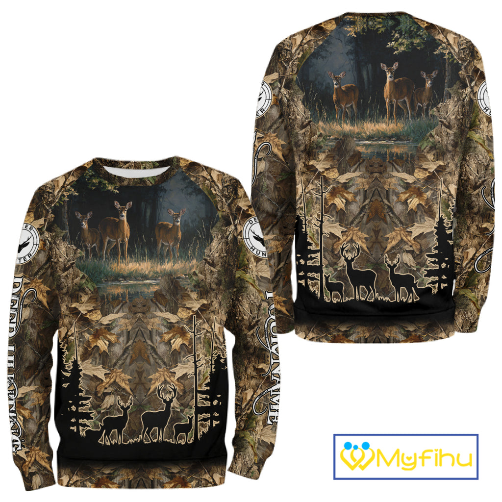 Deer Hunting 3D All Over Print Shirt Custom Brown Fall Season Camo Hunting Clothes NBT322