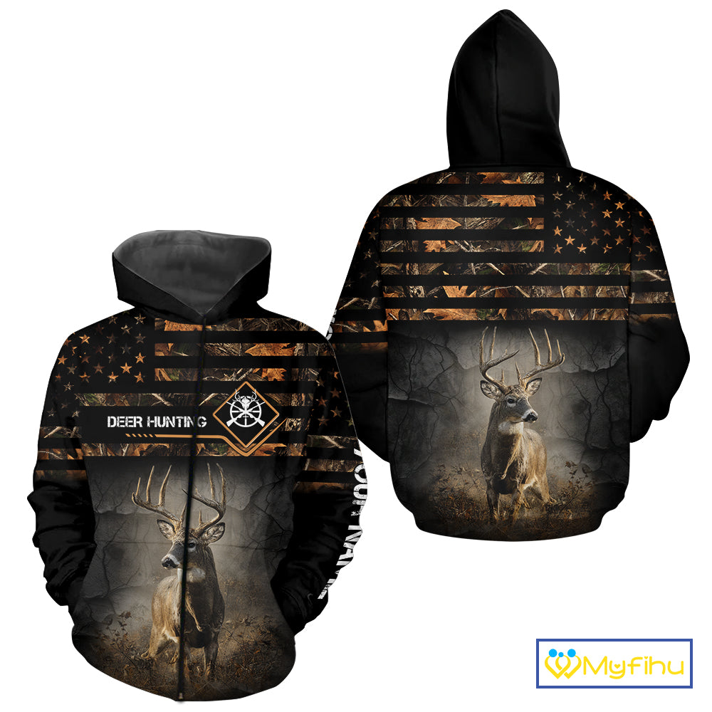 Deer Hunting Orange Camo US Flag All Over Print Custom Name, Hunting Gifts for Men NBT246