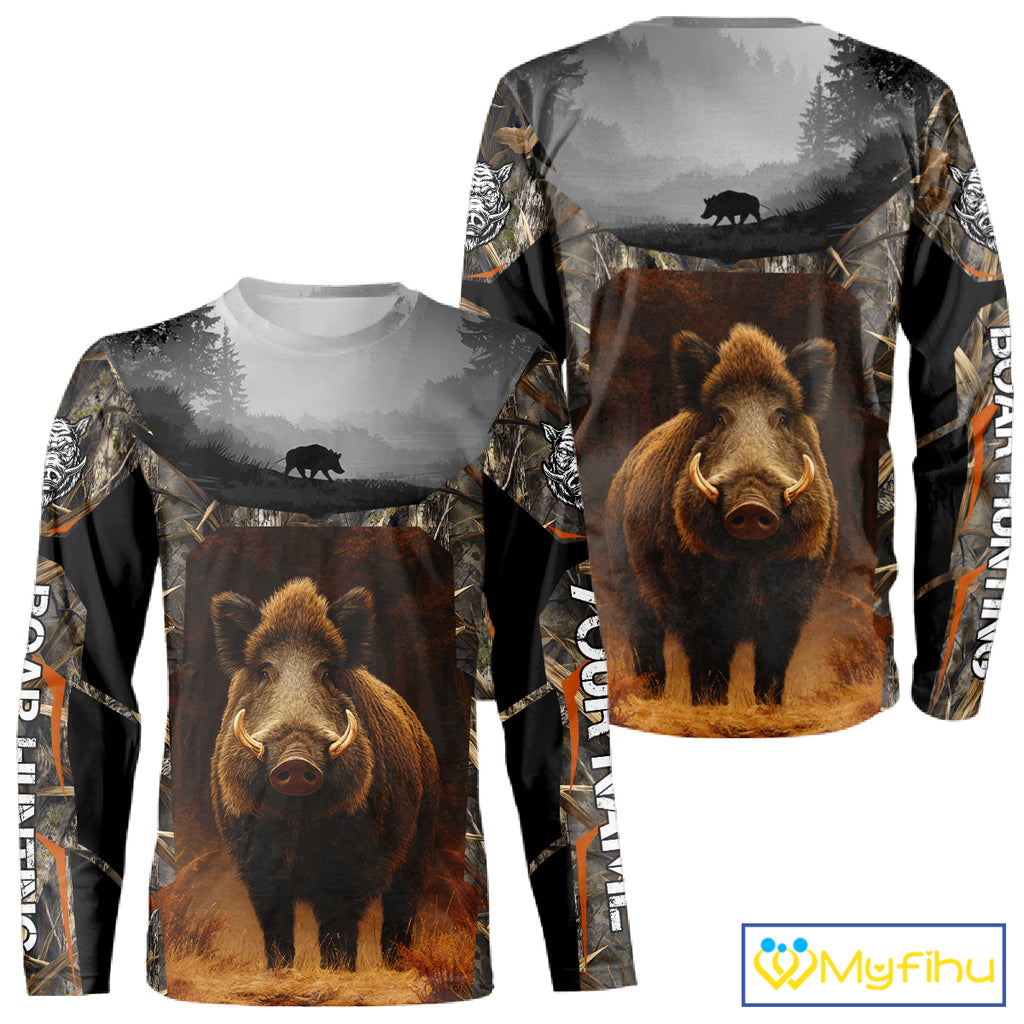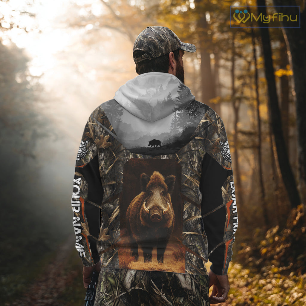 Boar Hunting Shirt Brown Camouflage Hoodie, Long Sleeve Custom Name For Men NBT247