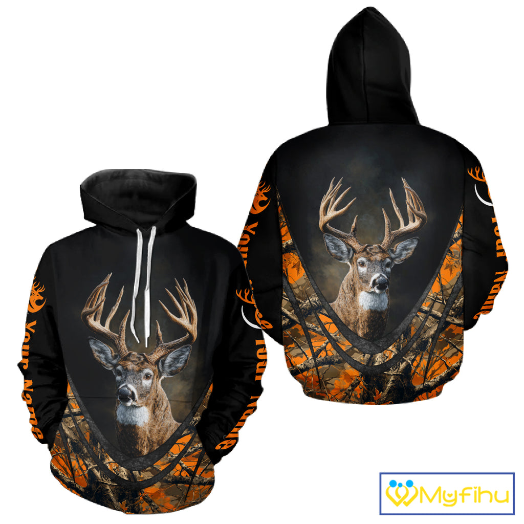 Deer Hunting Shirt Orange Camo 3D Custom Name, Season Deer Hunting, Hunting Gifts for Men NBT251