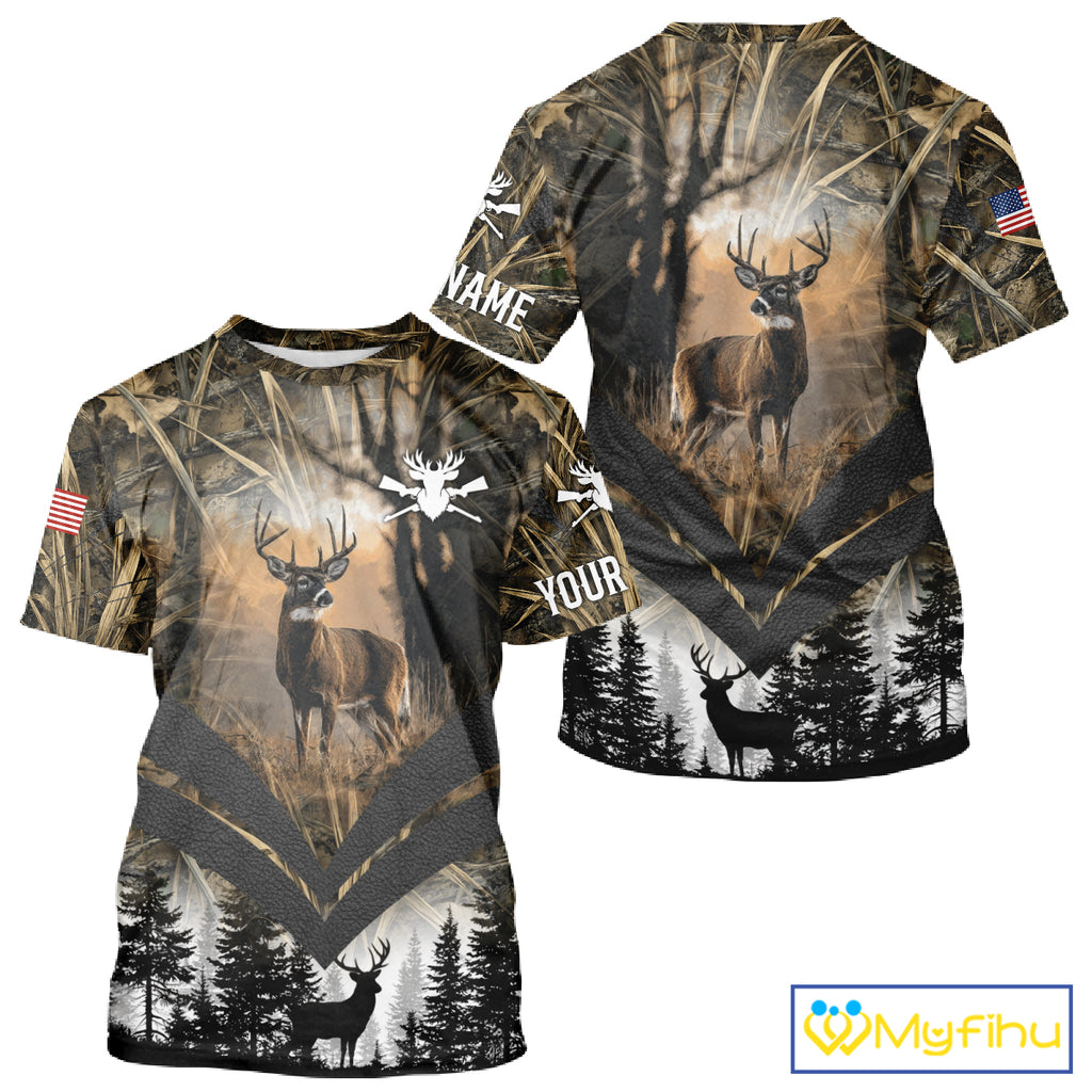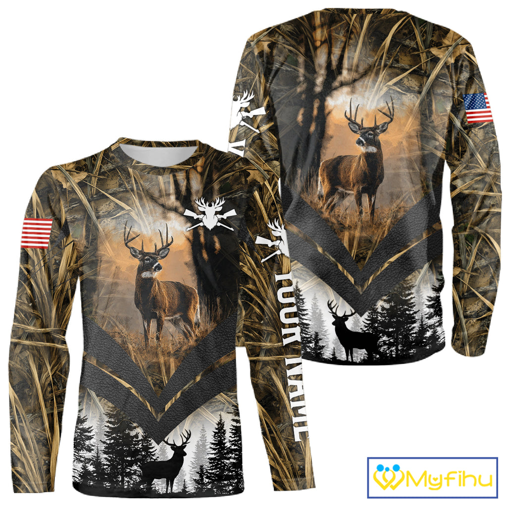 Deer Hunting Shirt US Flag 3D All Over Print, Custom Name Personalized Gift NHT298