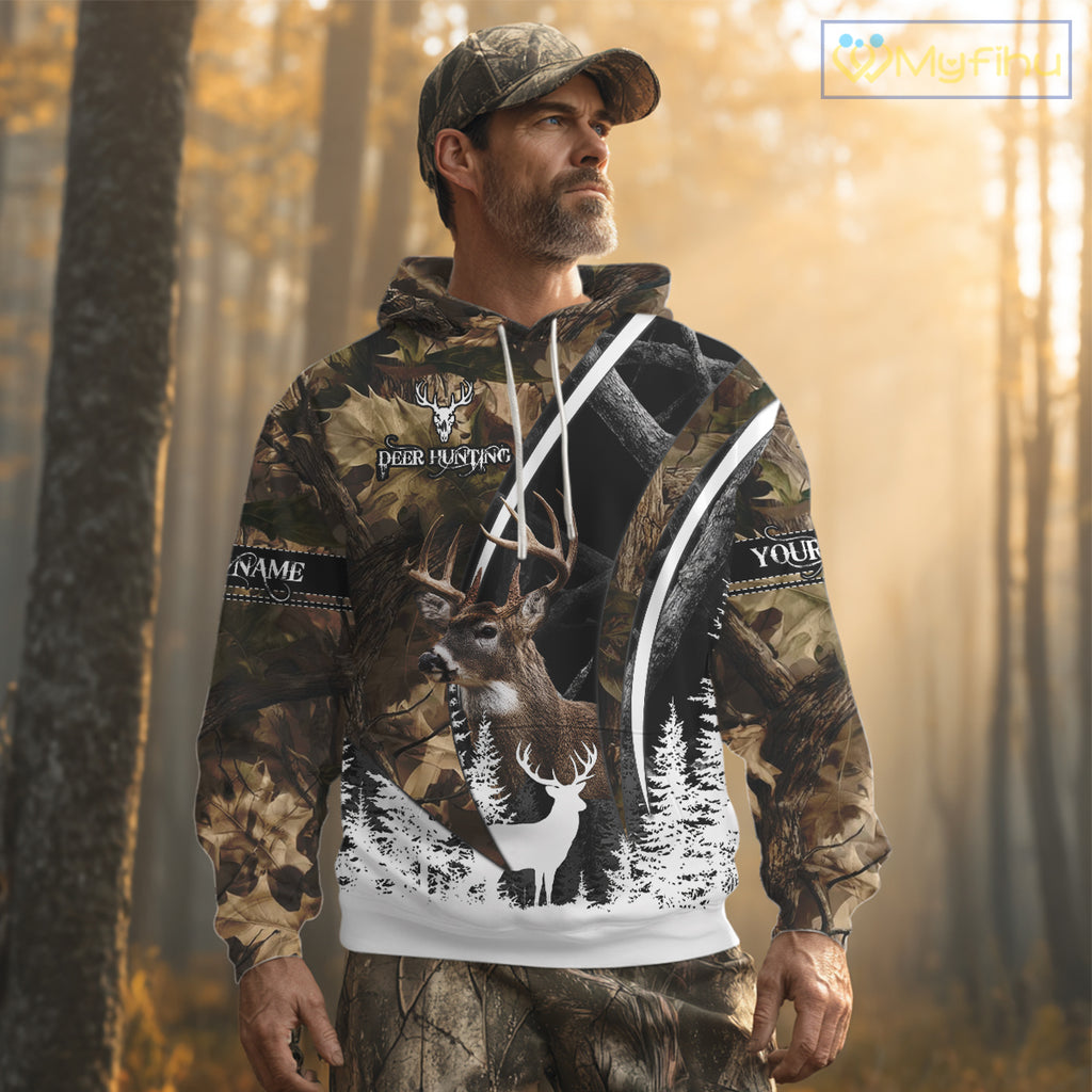 Forest Camo Deer Hunting 3D Shirt – Custom Name Personalized Gift NHT299