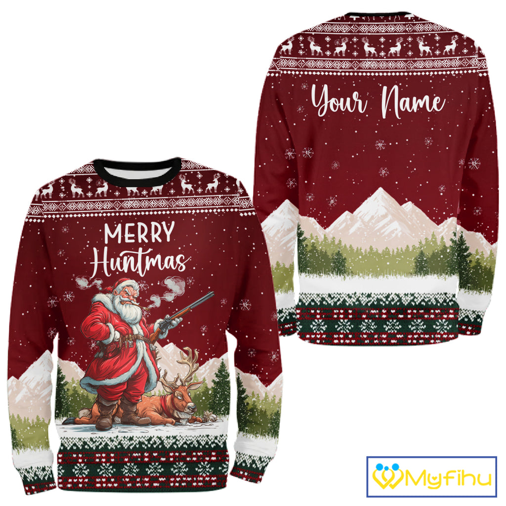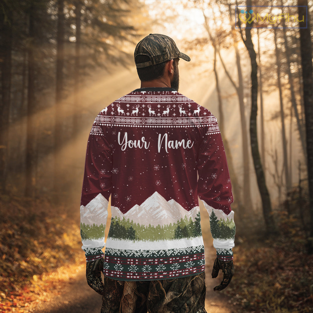 Funny Ugly Pattern Santa Deer Hunting Customized Name All Over Print Shirts for Hunter NBT283