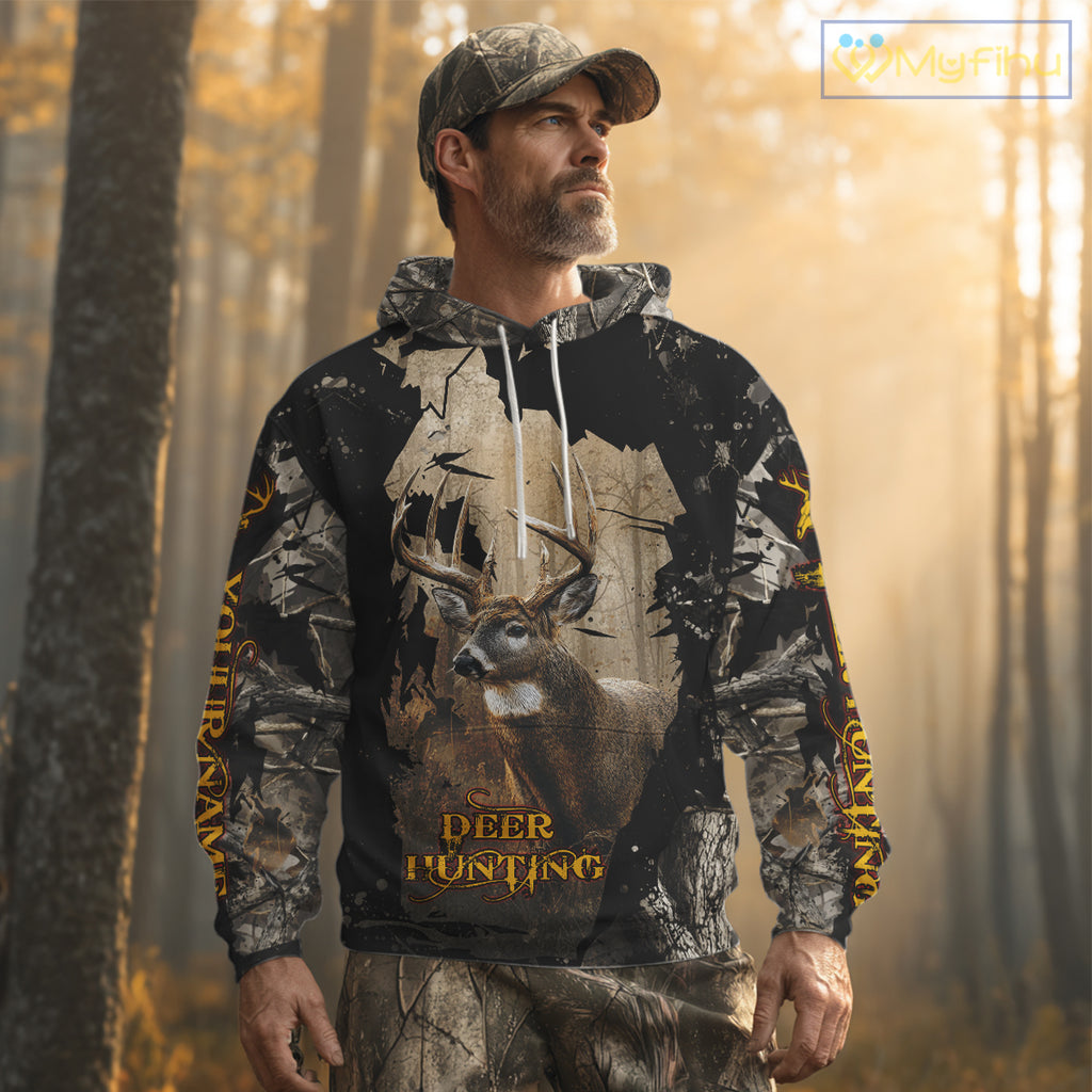 Personalized Deer Hunting 3D All Over Printed Hoodie Brown Camo, Hunting Gift NBT306
