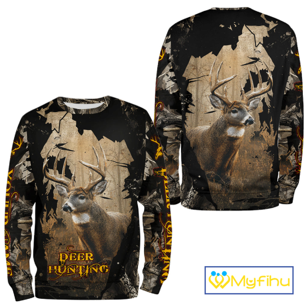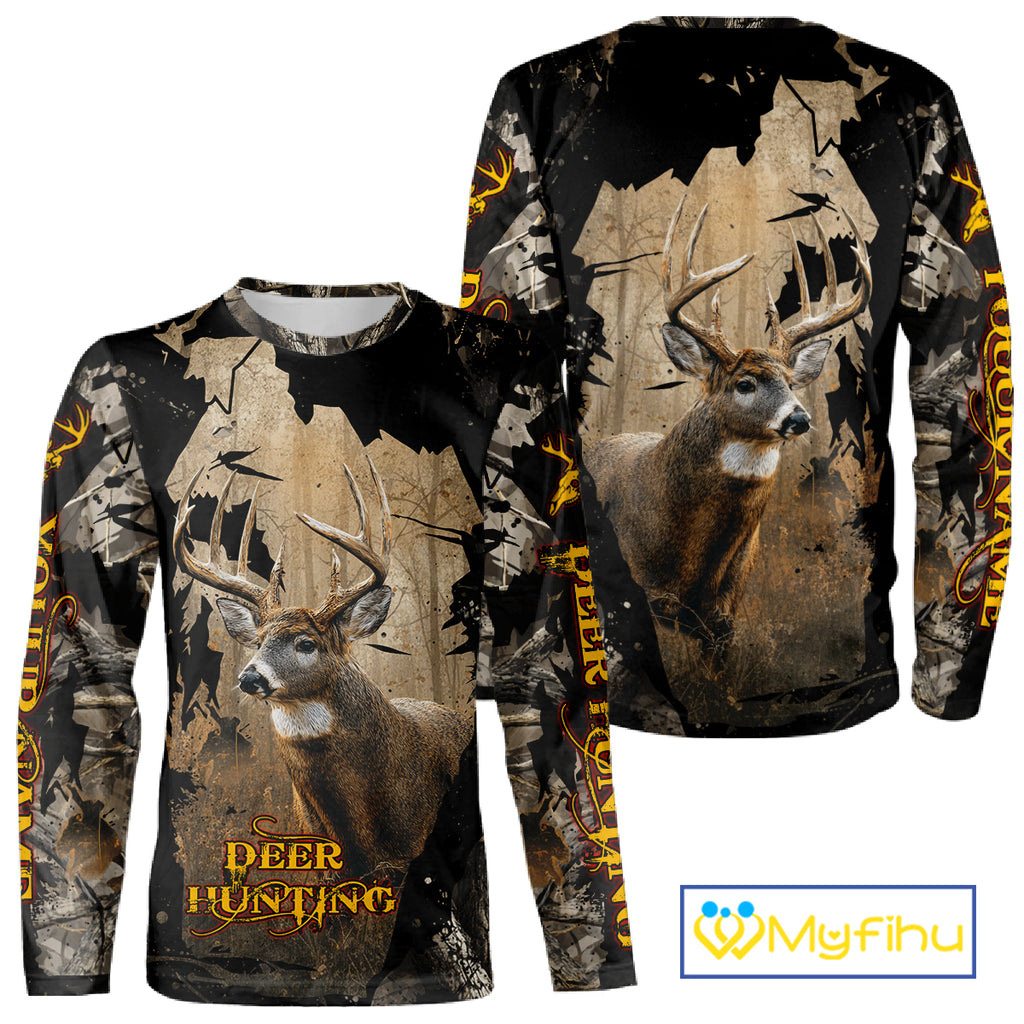 Inspired by the thrill of the hunt and the beauty of the outdoors, this shirt combines durability, comfort, and a unique hunting vibe. Customize it with your name or preferred design elements — from deer graphics to scenic landscapes — to create a one-of-a-kind piece. A perfect gift for passionate deer hunters and outdoor lovers, especially during hunting season.