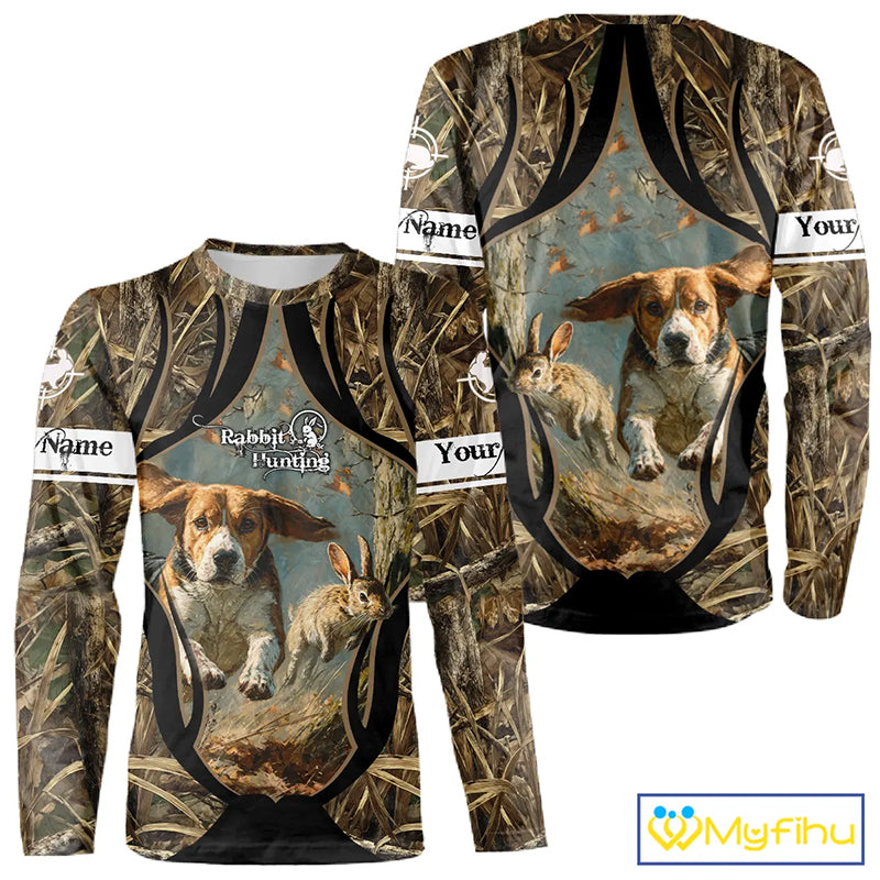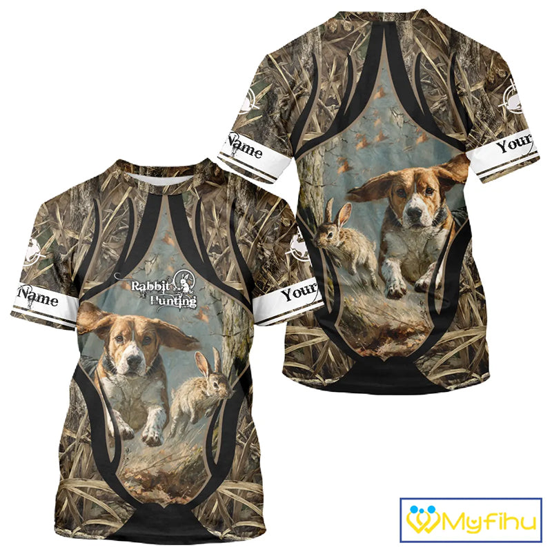 Personalized Rabbit Hunting Beagle Dog 3D All Over Printed Shirts, Hunting Clothes for Men NBT326