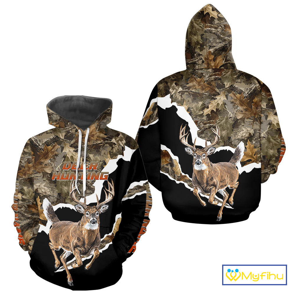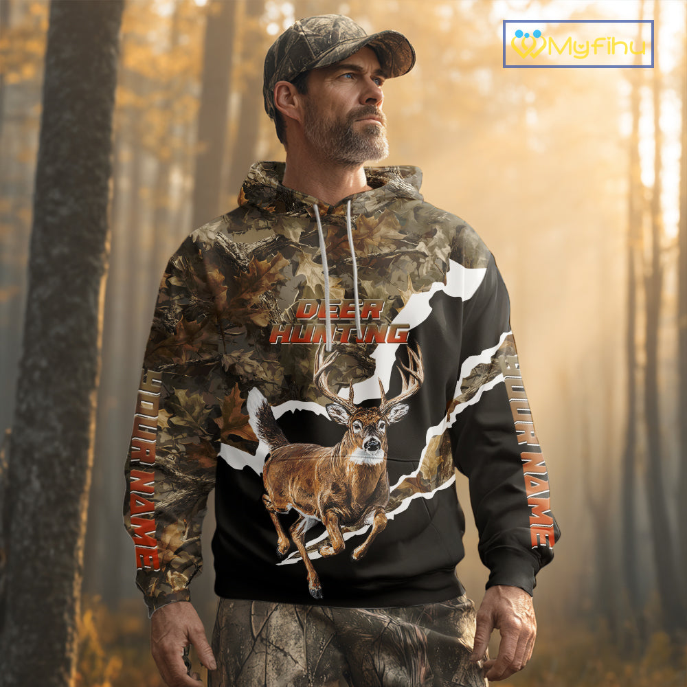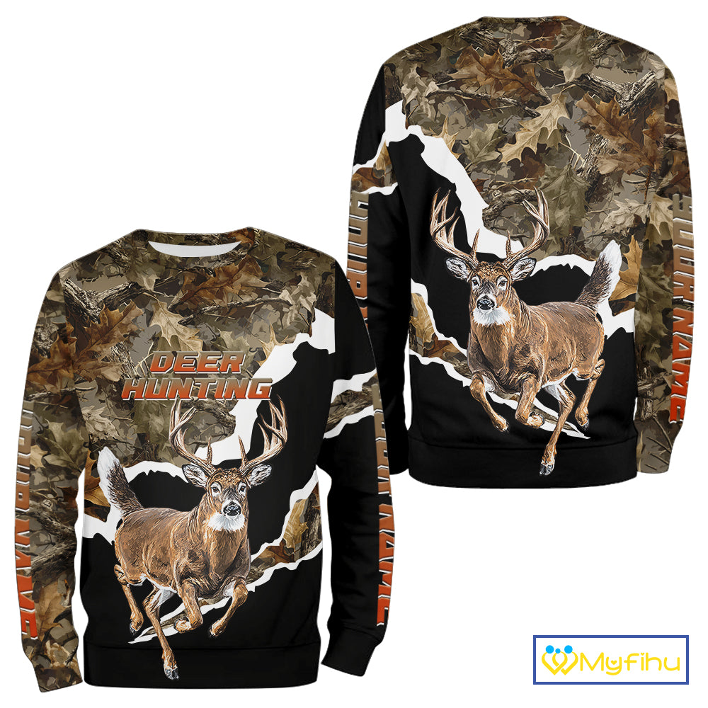 Whitetail Deer Camo Customize Name 3D Printed Long Sleeve Hoodie Hunting Shirts for Men NBT303
