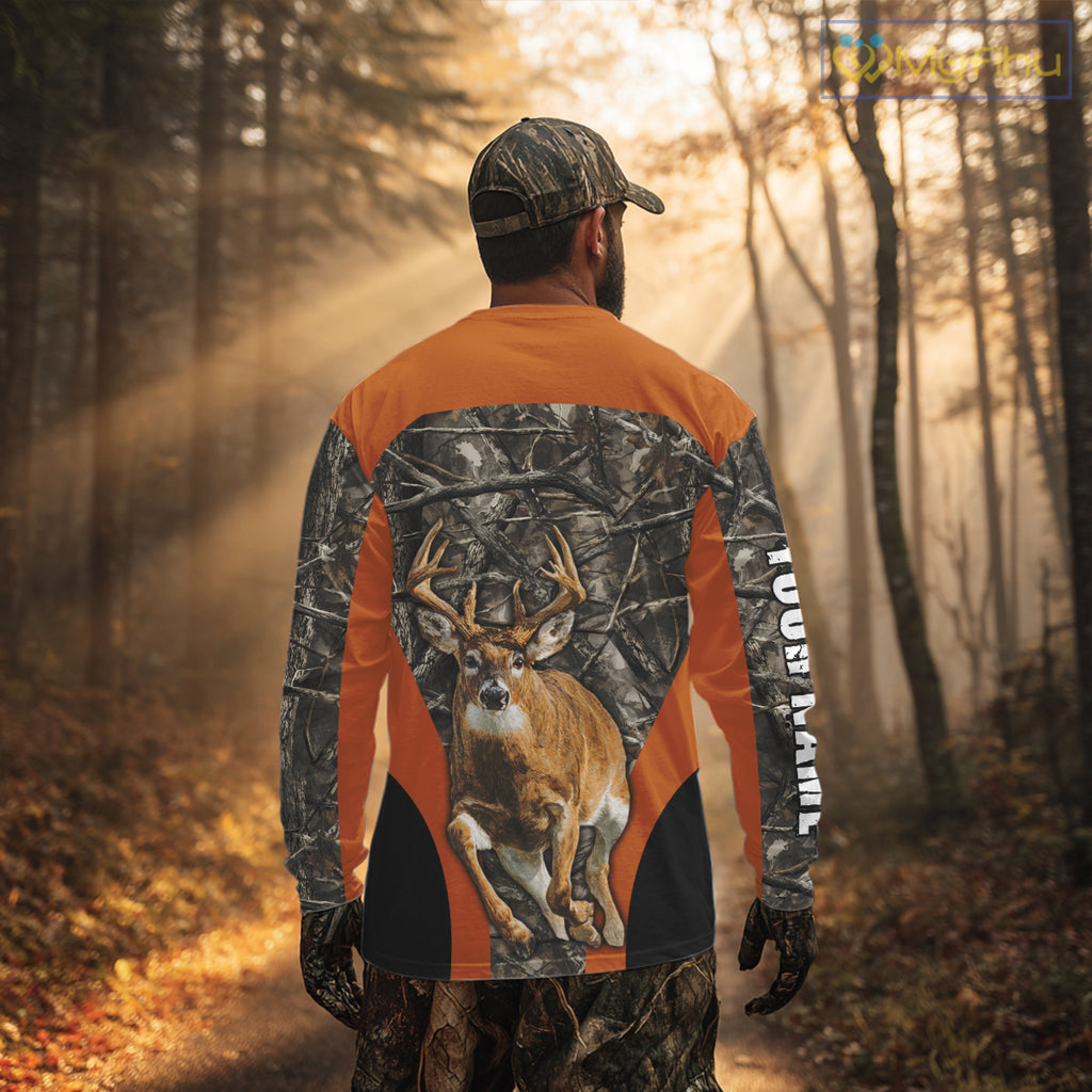 Whitetail Deer Hunting Custom Name Camo Shirt Hunting Hoodie, Camouflage Deer Shirt NBT312
