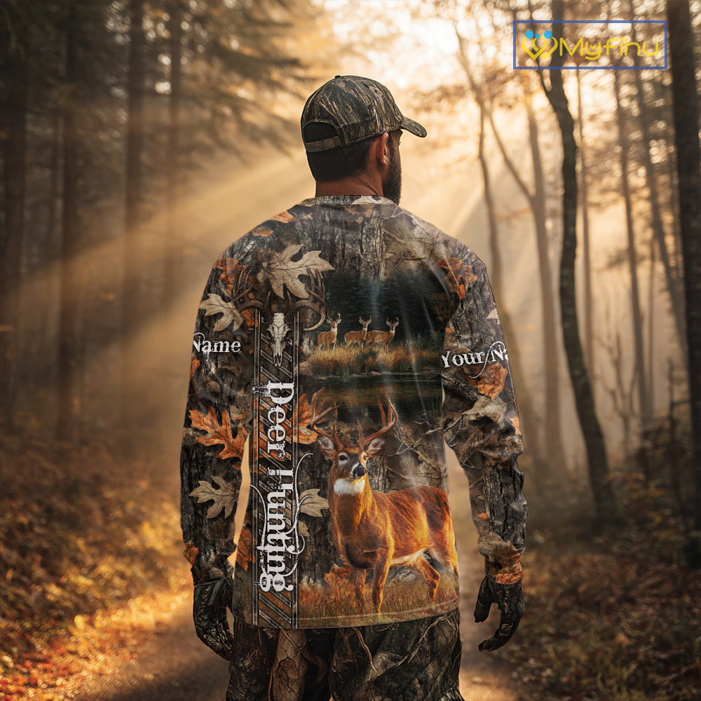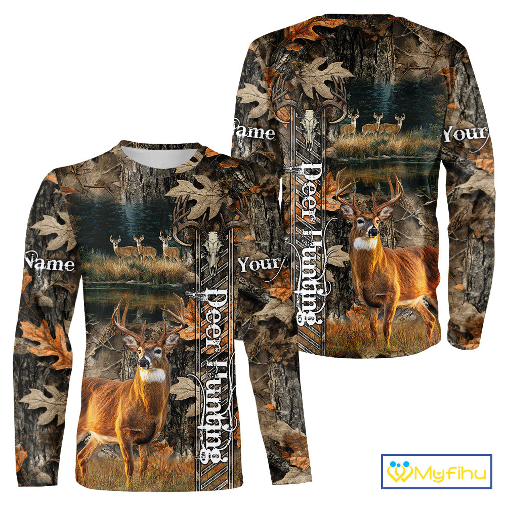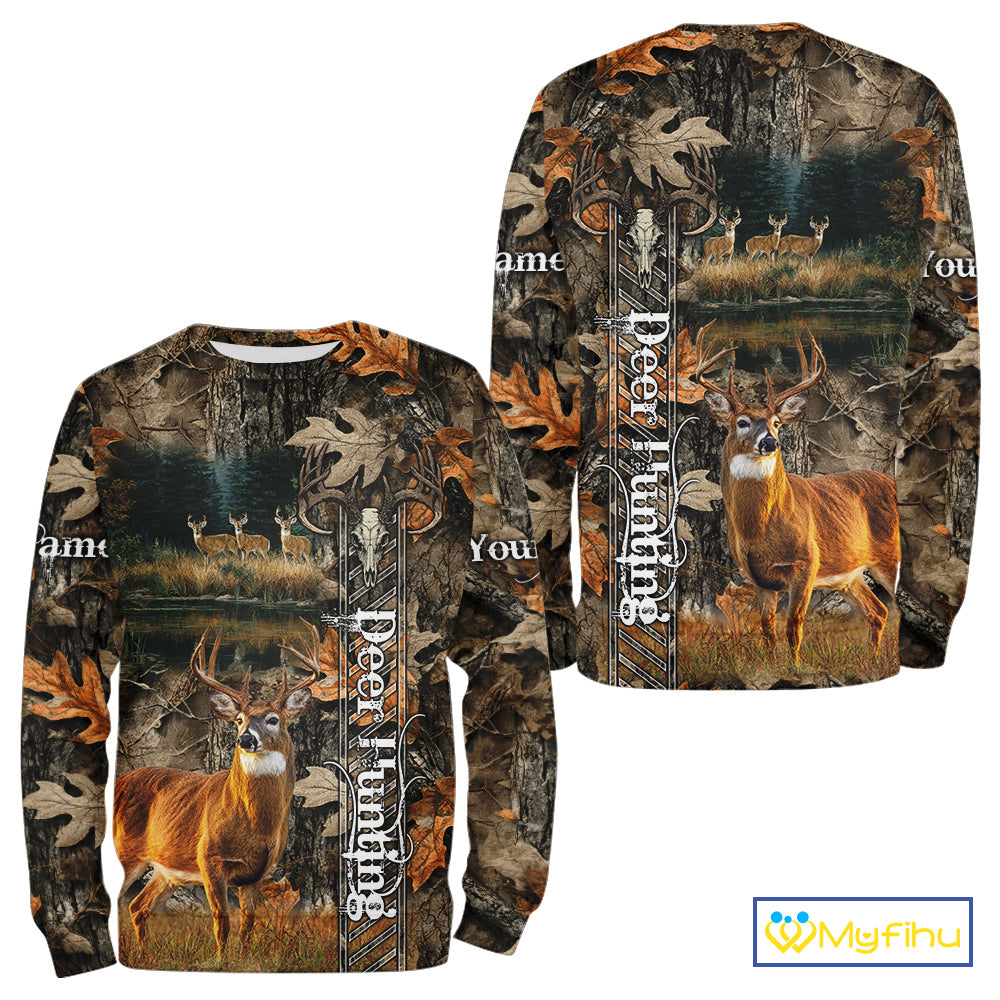 Whitetail Deer Hunting Custom Name Camo Shirt, Hunting Hoodie Camouflage Deer Shirts NBT333