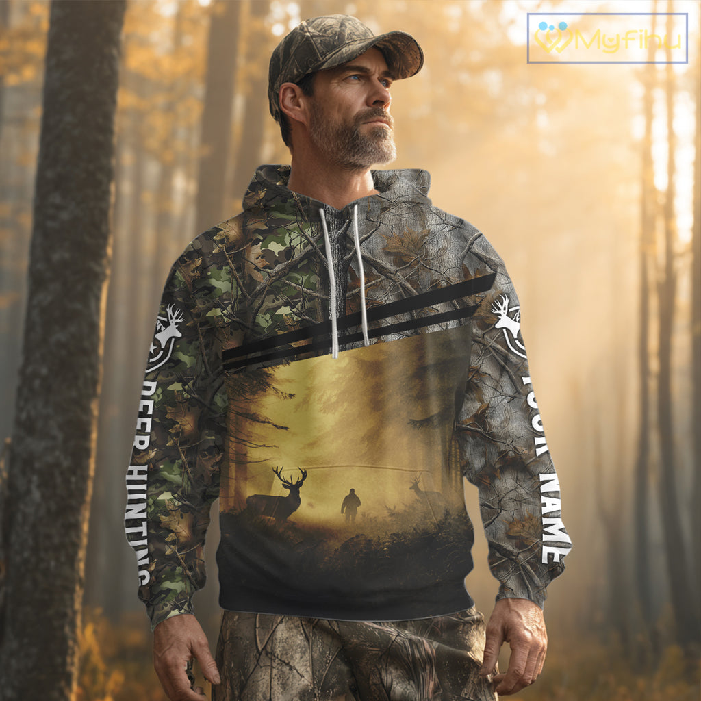 Inspired by the thrill of the hunt and the beauty of the outdoors, this shirt combines durability, comfort, and a unique hunting vibe. Customize it with your name or preferred design elements — from deer graphics to scenic landscapes — to create a one-of-a-kind piece. A perfect gift for passionate deer hunters and outdoor lovers, especially during hunting season.