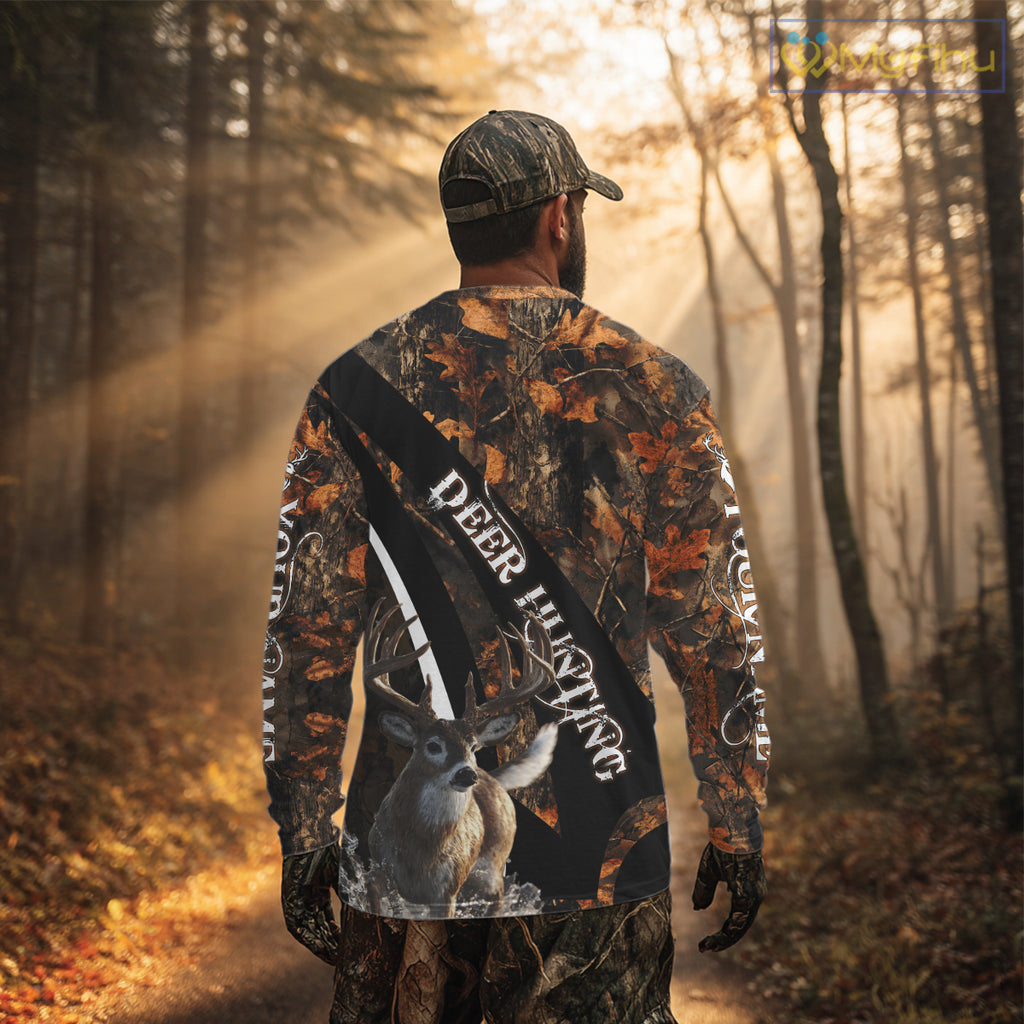 Inspired by the thrill of the hunt and the beauty of the outdoors, this shirt combines durability, comfort, and a unique hunting vibe. Customize it with your name or preferred design elements — from deer graphics to scenic landscapes — to create a one-of-a-kind piece. A perfect gift for passionate deer hunters and outdoor lovers, especially during hunting season.