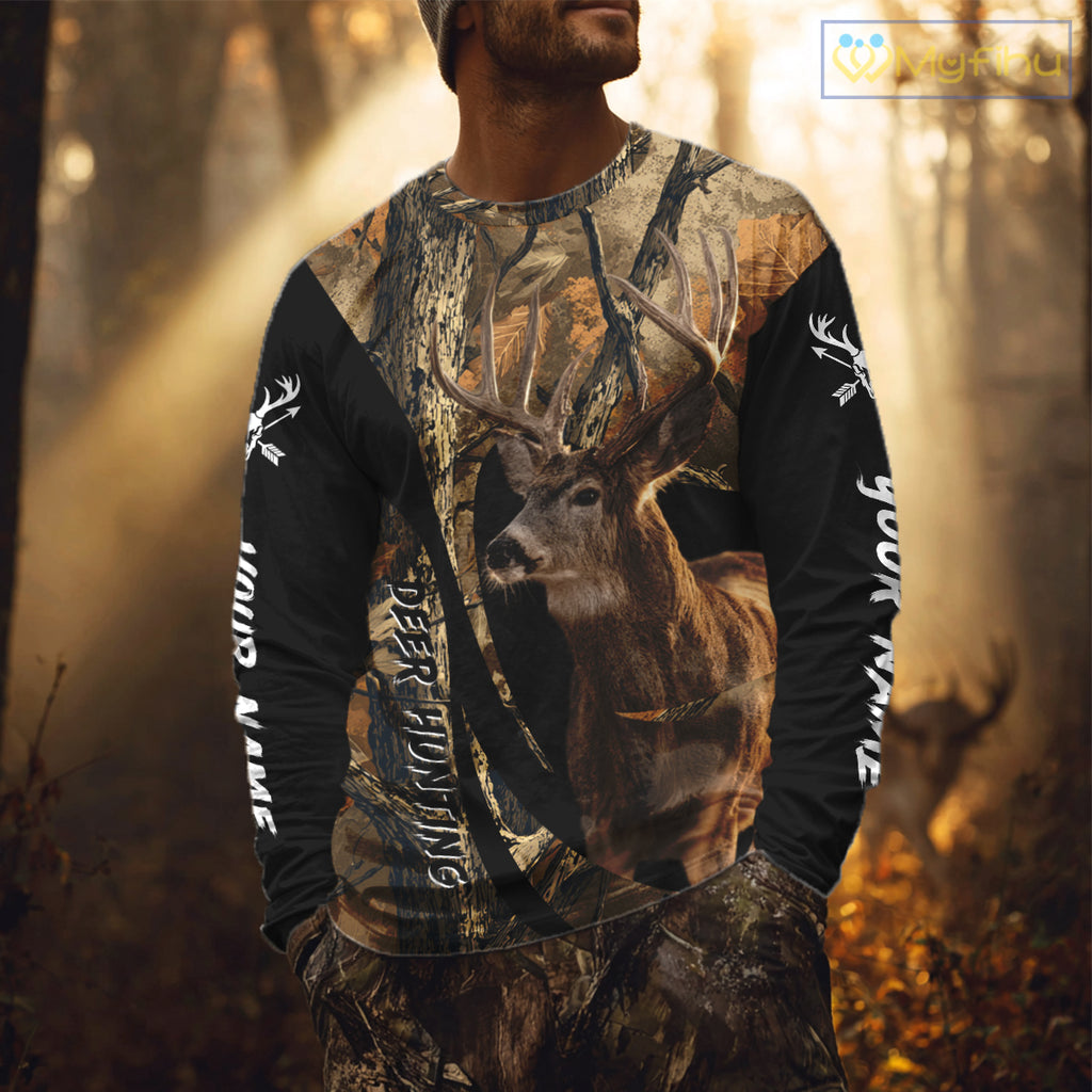 Whitetail Deer Hunting Shirt Custom Name Fall Camo, Season Deer Hunting Clothes For Men NBT252