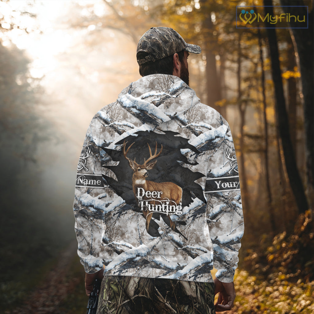 Whitetail Deer Hunting Shirts Custom Name Snow Camo, Deer Season Hunting Clothes For Men NBT273