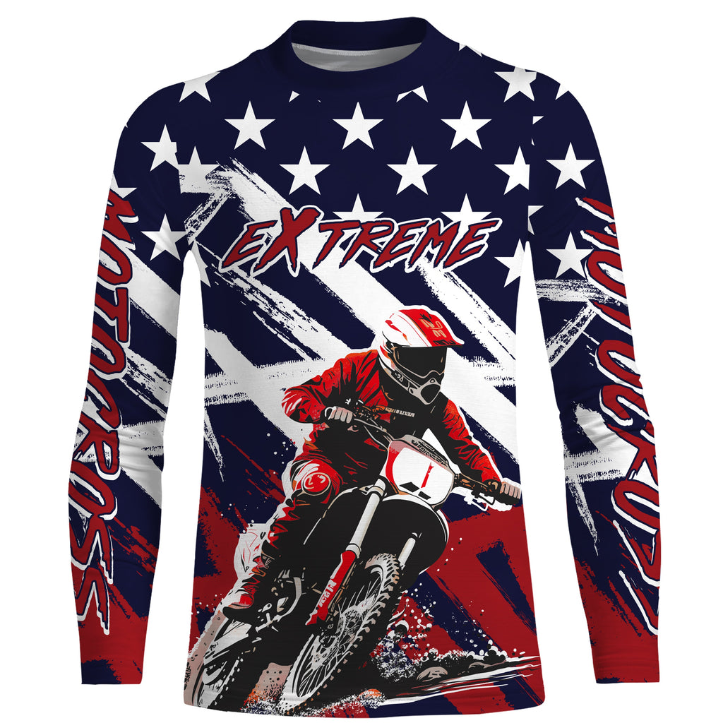 American Flag Motocross Jersey UPF30+ Youth Women Men Kid Dirt Bike Shirt Patriotic Racing Jersey XM103