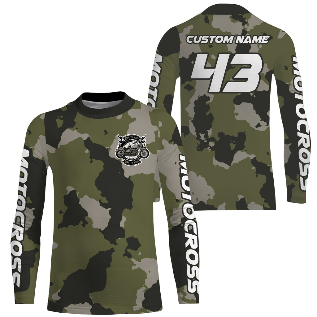 Camo Motocross Jersey Women Men Kid UPF30+ Dirt Bike Shirt Ride To Live MX Racing Off-Road XM126