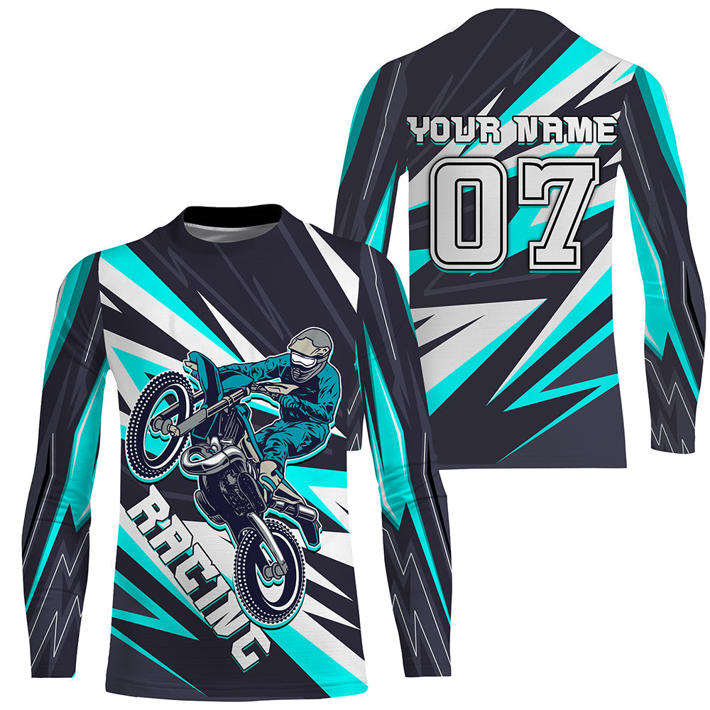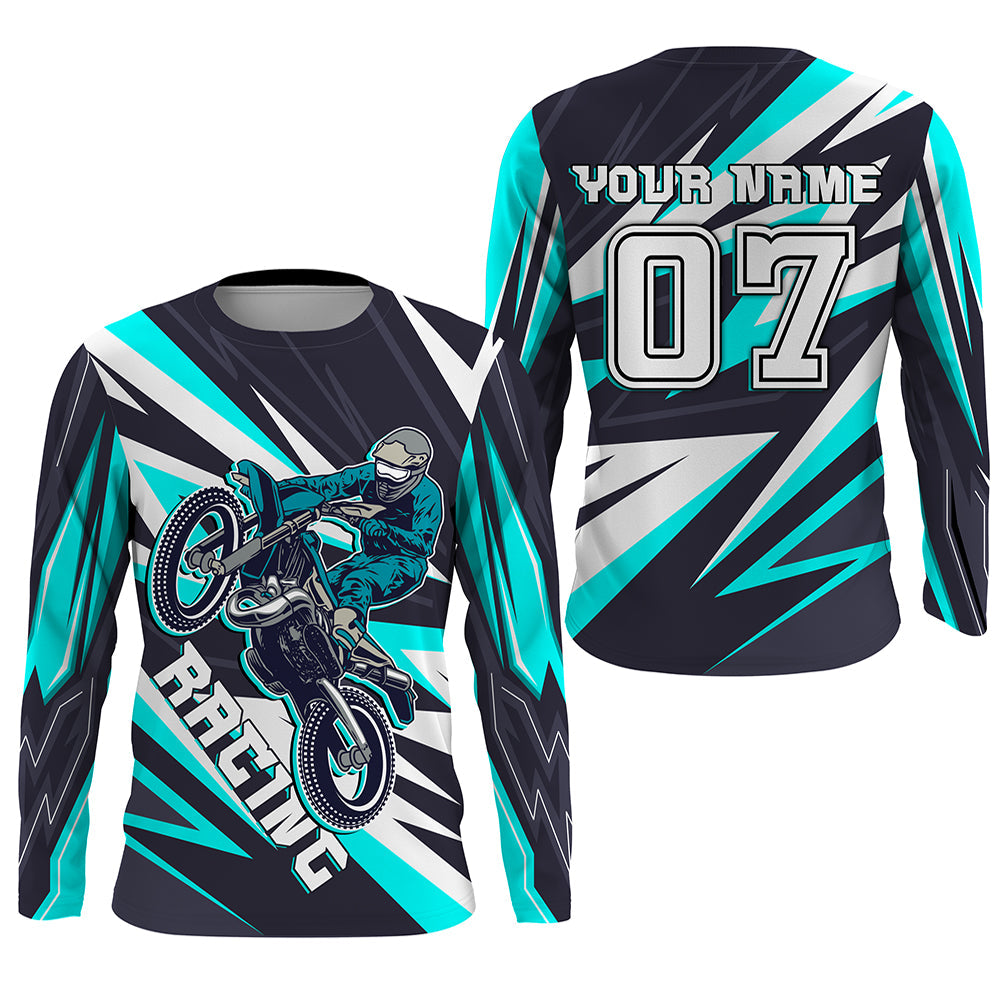 Personalized Racing Jersey Turquoise UPF30+ Youth Men Women Dirt Bike Shirt Supercross Motocross NMS1463