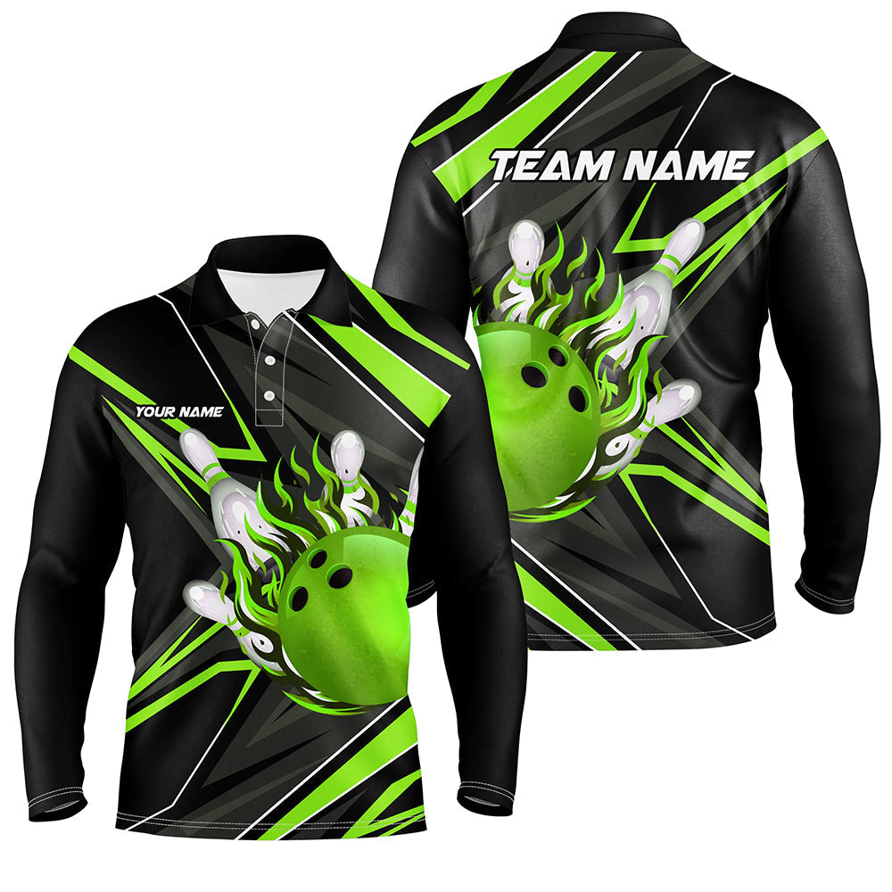 Black and green Men Bowling Polo Shirt custom Bowling Ball Pins flame bowling jerseys for Bowler NQS7386