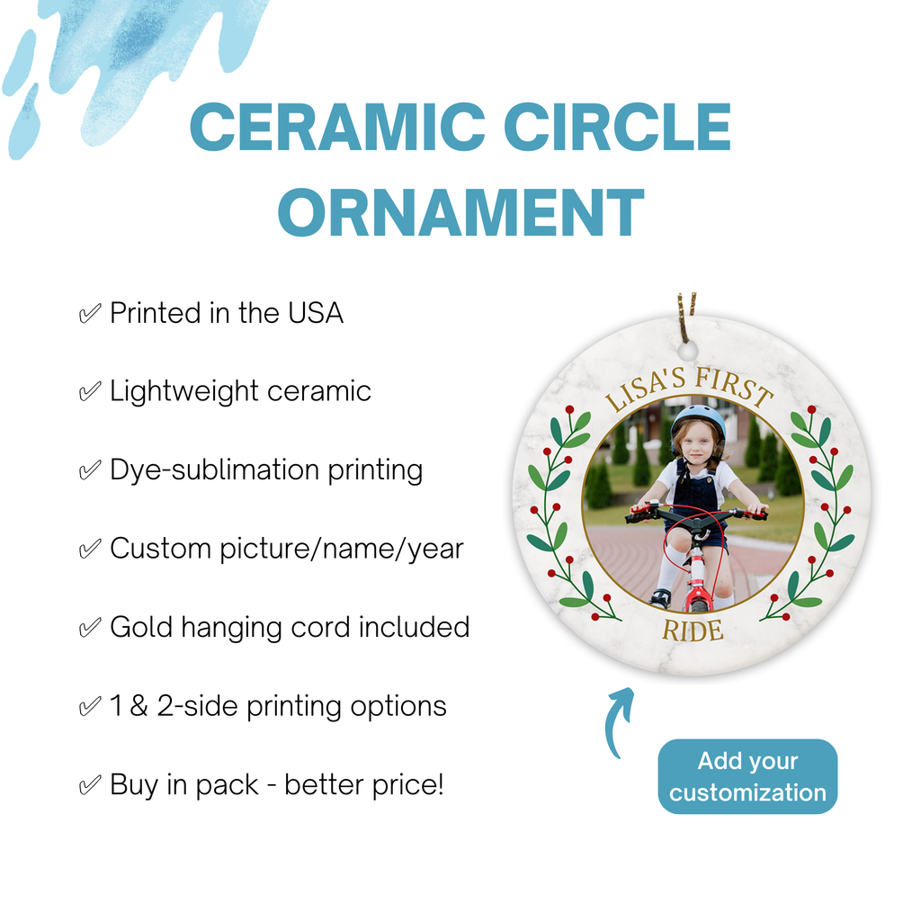 Kid's first ride bicycle ornament, riding cycling ornament, personalized biking gifts for Xmas 2022| ONT35