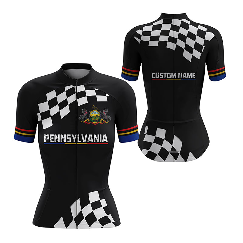 Pennsylvania men women cycling jersey Black bike shirt with 3 back pockets UPF50+ bicycle clothes| SLC204