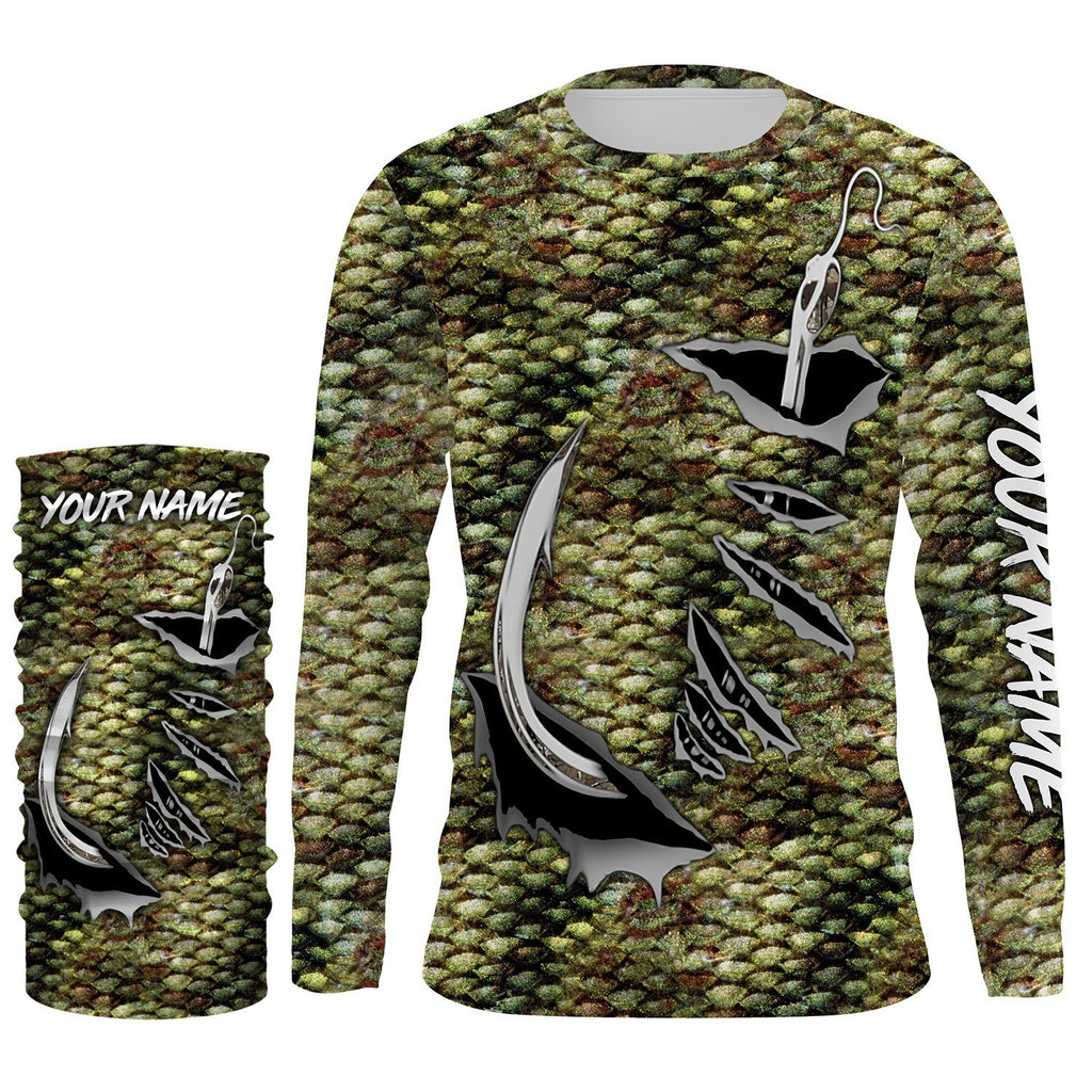 Bass Fishing scales Fish hook Custom Long Sleeve Fishing Shirts, Bass Fishing apparel IPH1919