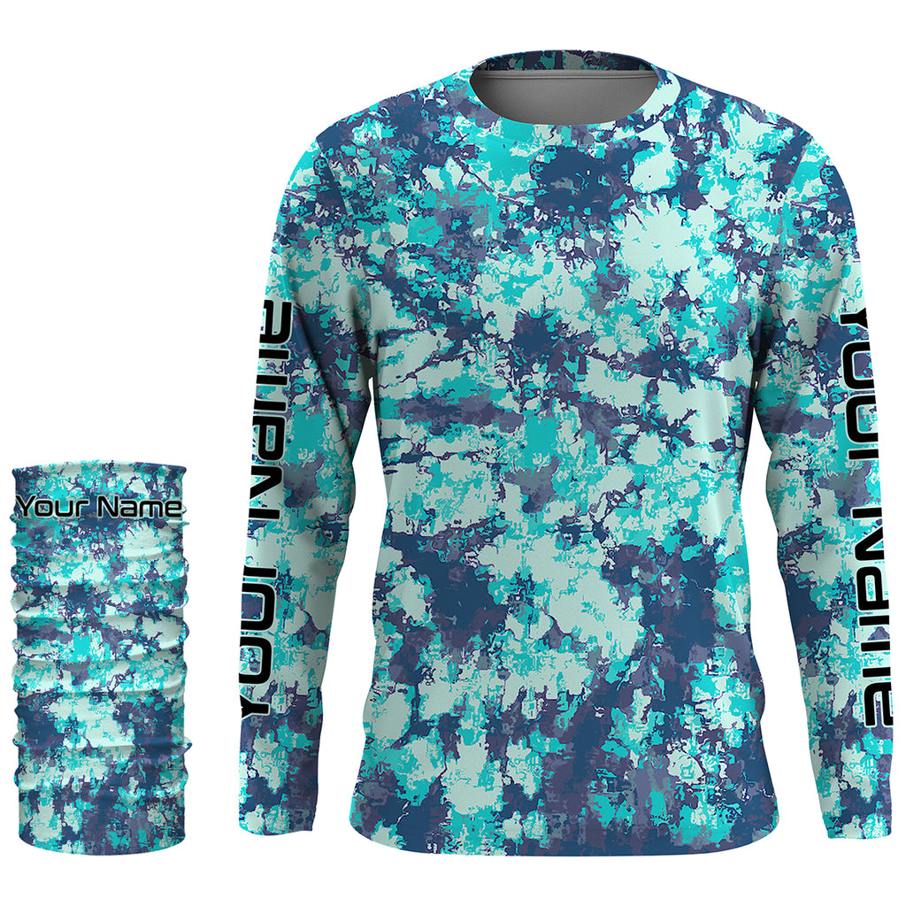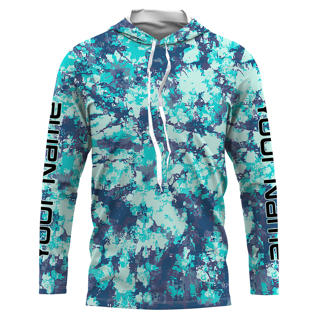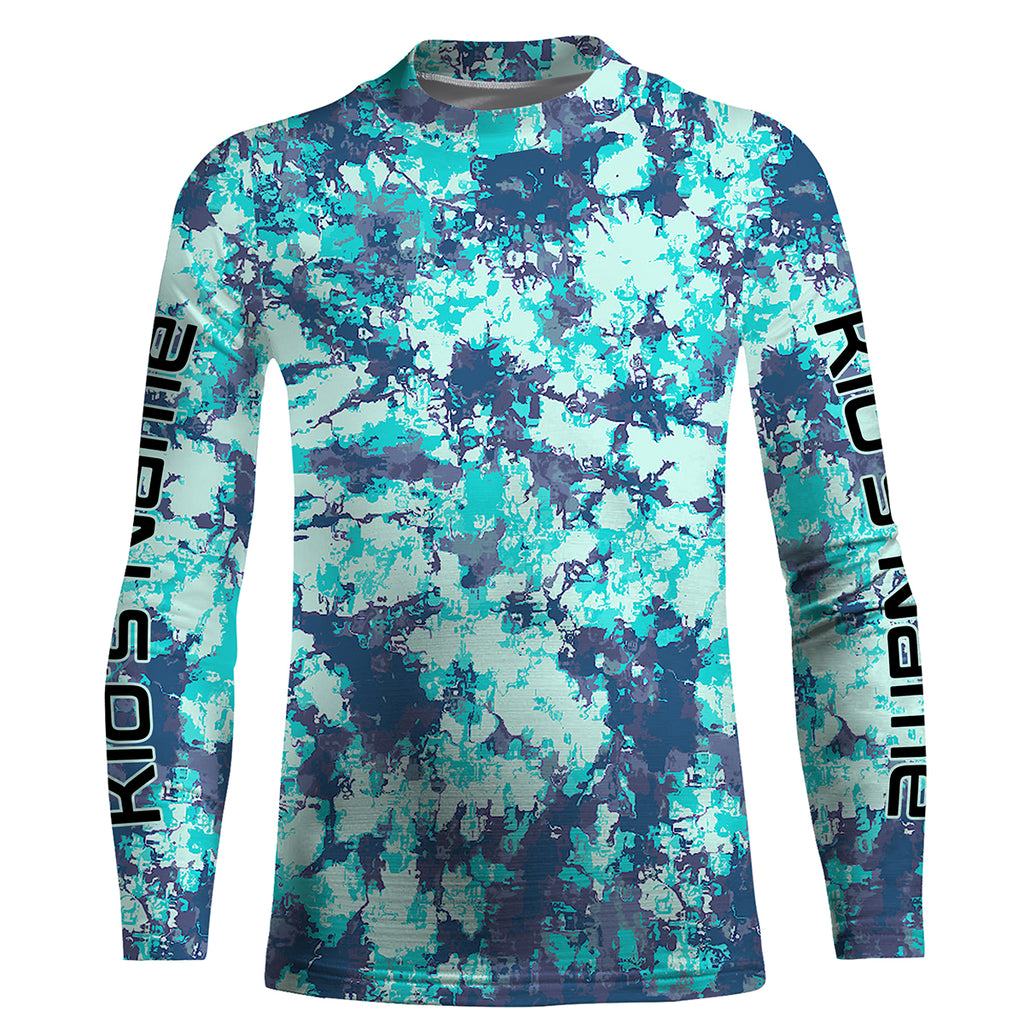 Custom Blue Tie dye camo UV Long Sleeve performance Fishing Shirts, personalized Fishing jerseys - IPHW1708