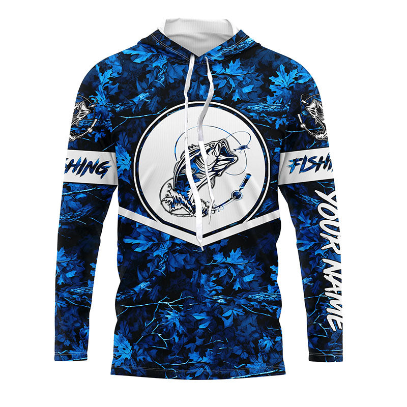 Largemouth Bass fishing blue camo personalized fishing apparel UV protection custom name fishing shirt NQS1412