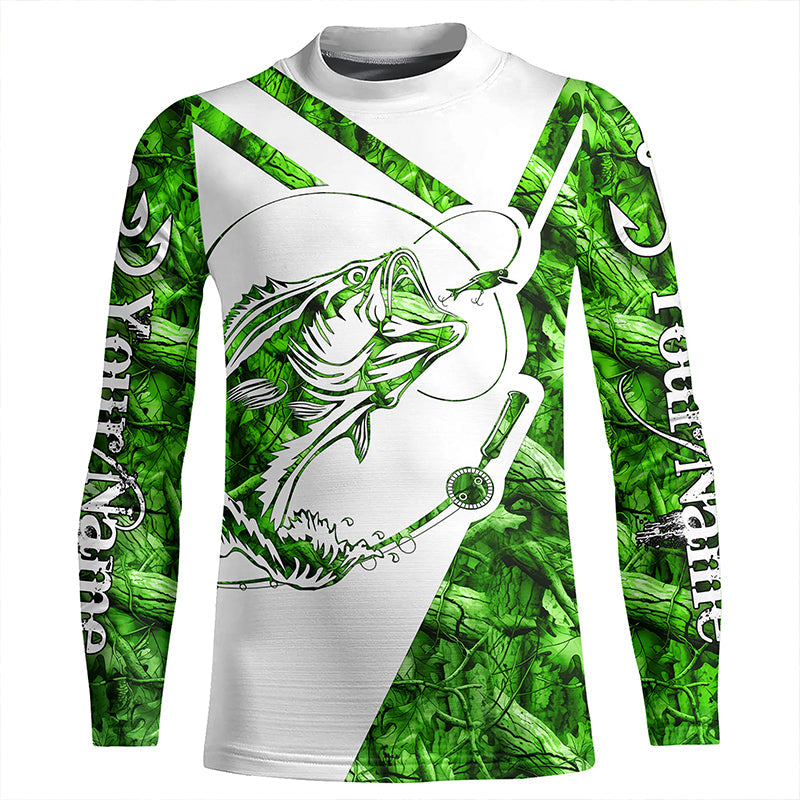 Largemouth Bass Fishing green camo performance fishing shirts Custom long sleeves shirts NQSD175