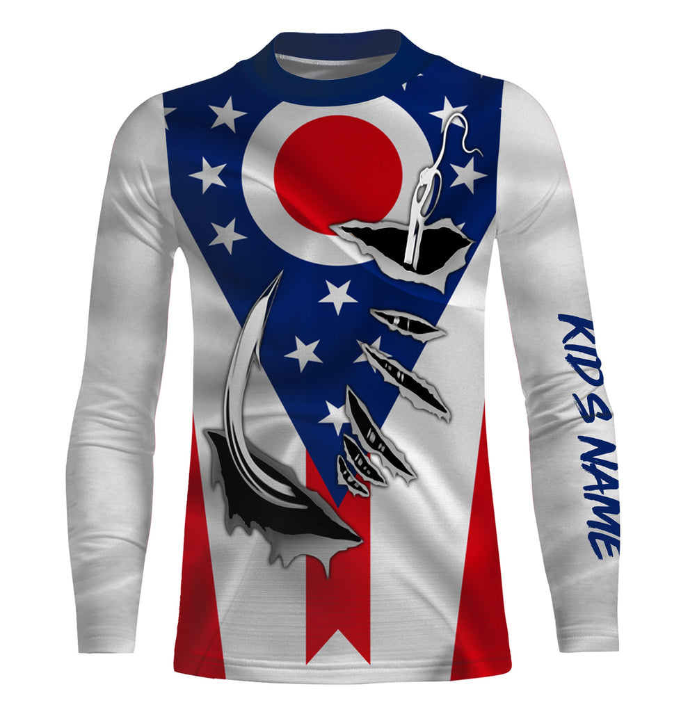OH Fishing 3D Fish Hook Ohio Flag UV protection quick dry customize name long sleeves shirts UPF 30+ personalized fishing apparel gift for Fishing lovers - IPHW476