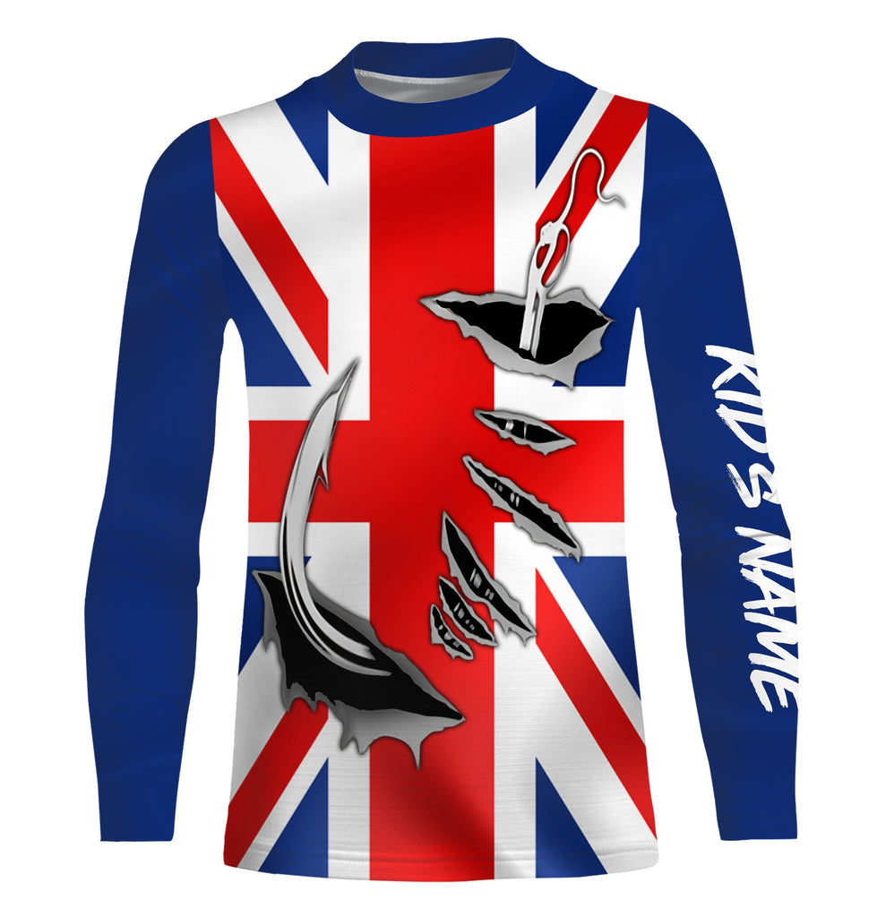 UK Fishing 3D Fish Hook England Flag Custom Long Sleeve performance Fishing Shirts personalized Patriotic Fishing gifts - IPH1976