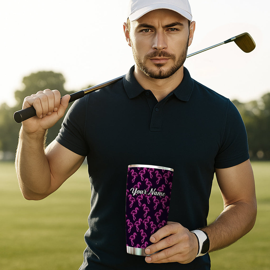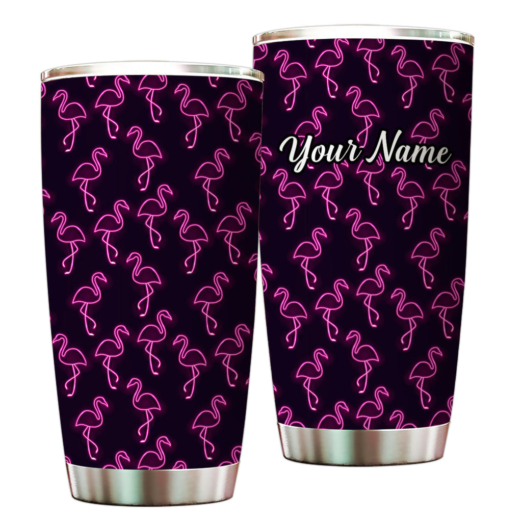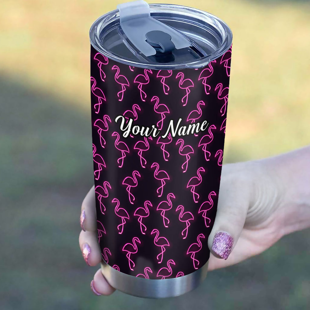 1PC neon pink flamingos pattern Custom Name Tumbler Cup, flamingos Golfing Gifts NQS9917
