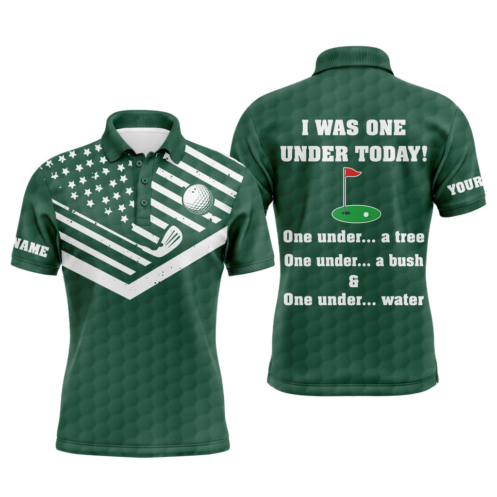 American flag green Mens golf polos shirts custom I was one under today, under a tree, bush and water NQS5092