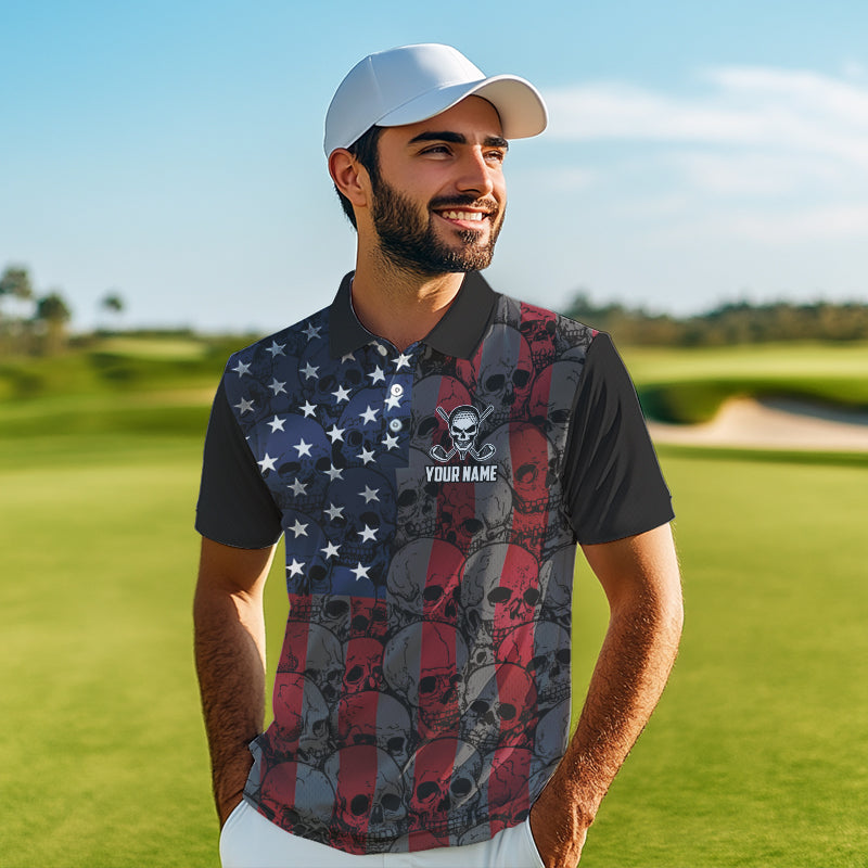 American Flag Skull Camo Golf Polo shirt for Men Custom patriotic golf team uniform NQS9791