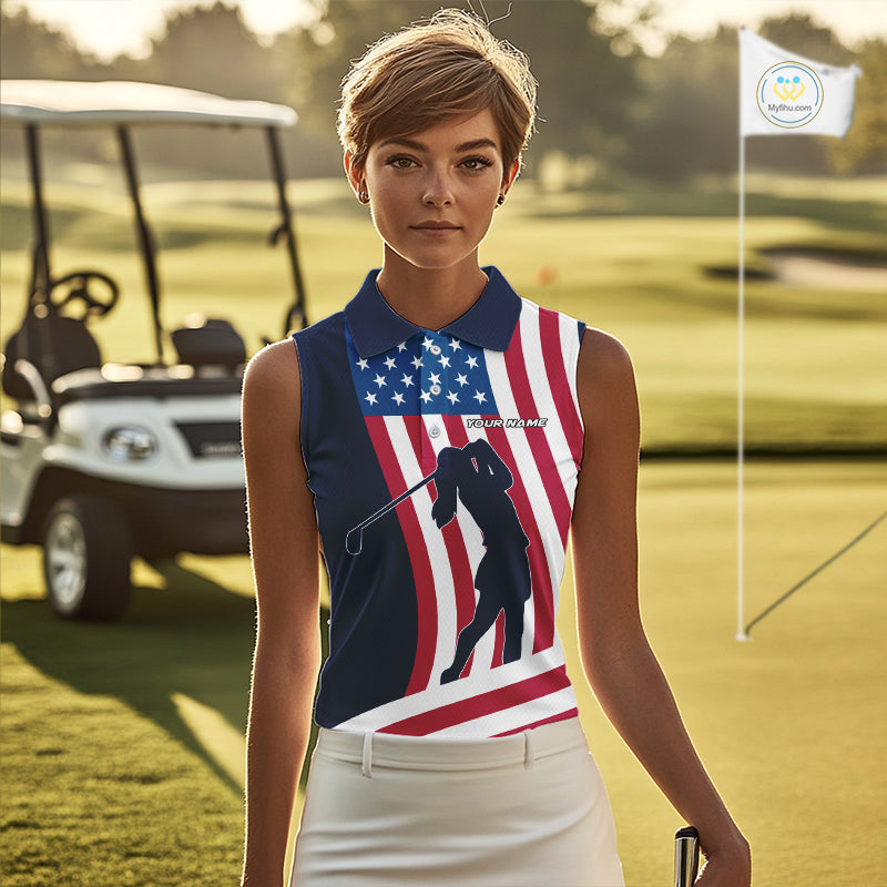 American Flag Sleeveless Polo Shirt custom women's patriotic polo shirts, best golf shirts for ladies NQS10253