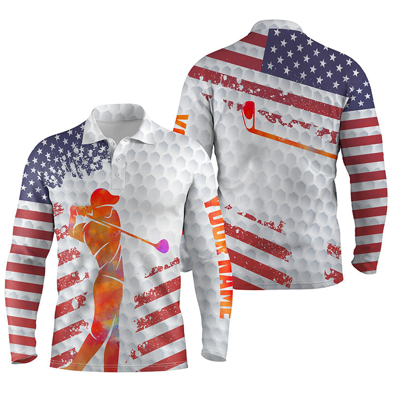 American flag white golf balls skin custom name short sleeve, long sleeve golf polos shirt for mens NQS4825