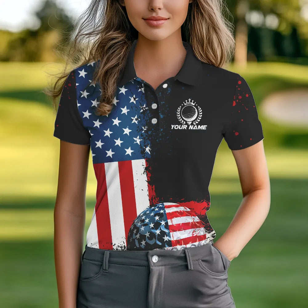 Black American Flag Women Golf Polo Shirts Custom Golf attire for ladies, patriotic golf gifts NQS9696
