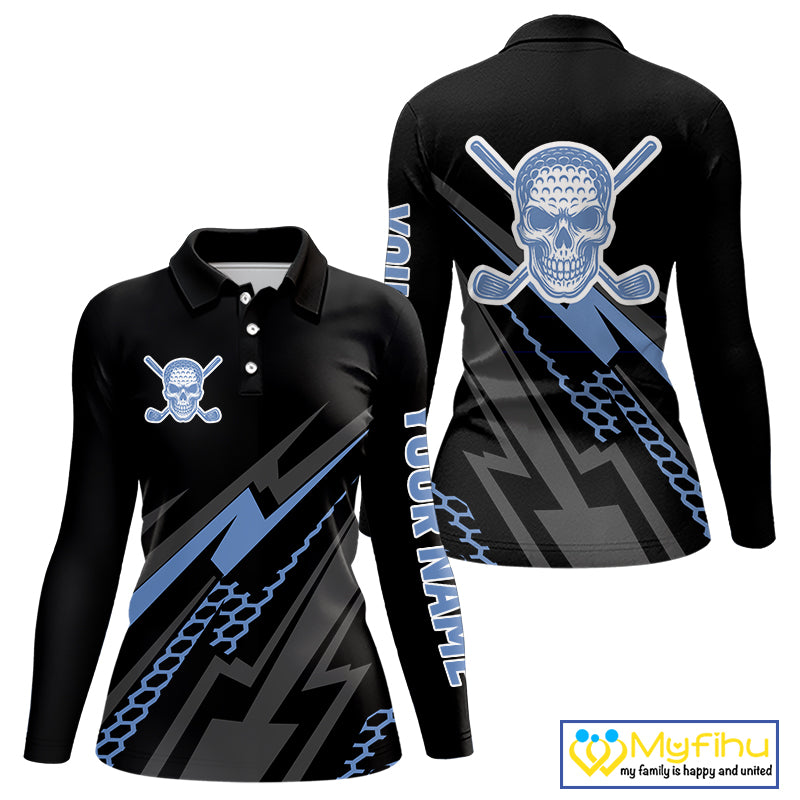 Black and Blue Skull Golf polo shirts For Women Custom Ladies golf tops, Personalized golf gifts NQS10467
