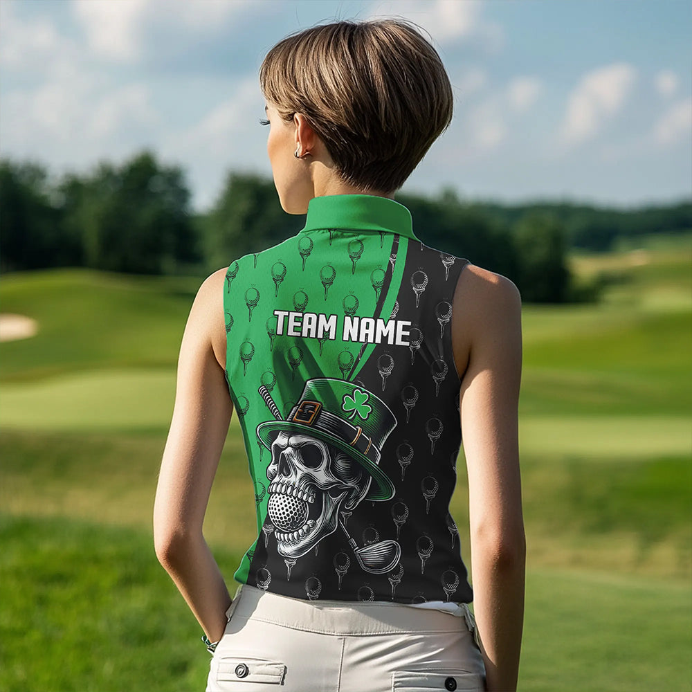 Black and Green Camo Skull Women sleeveless polo shirt Custom St Patrick Day ladies golf wear NQS9566