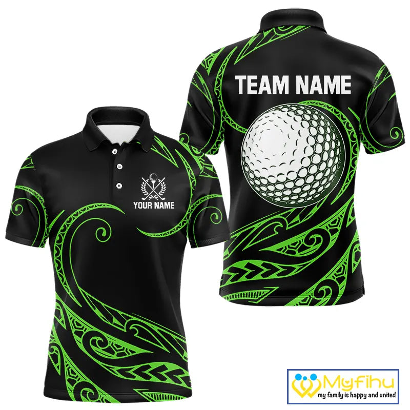Black and Green Tribal Pattern Golf Ball Mens Golf Polo Shirts custom unique mens golf apparel NQS9820